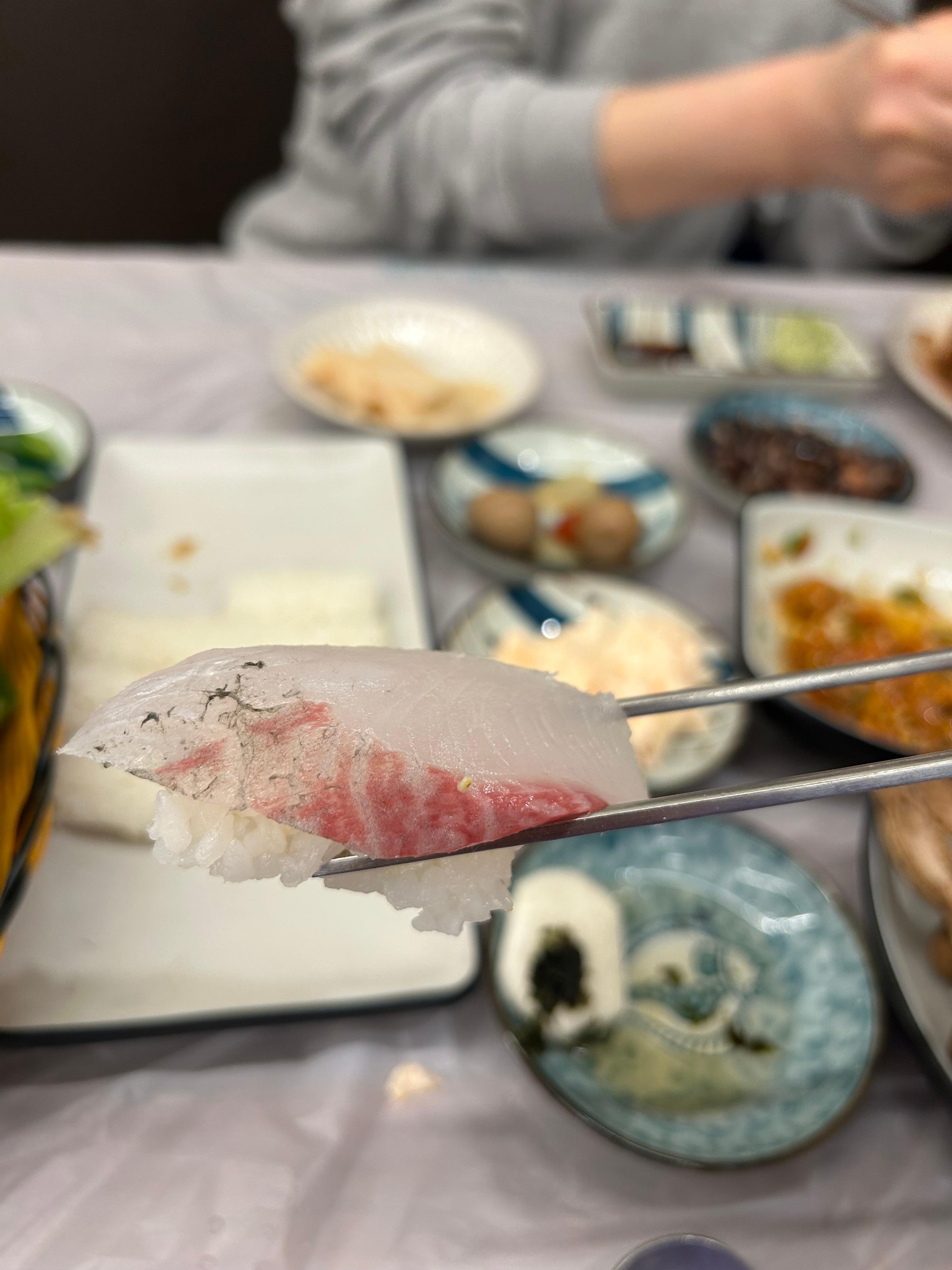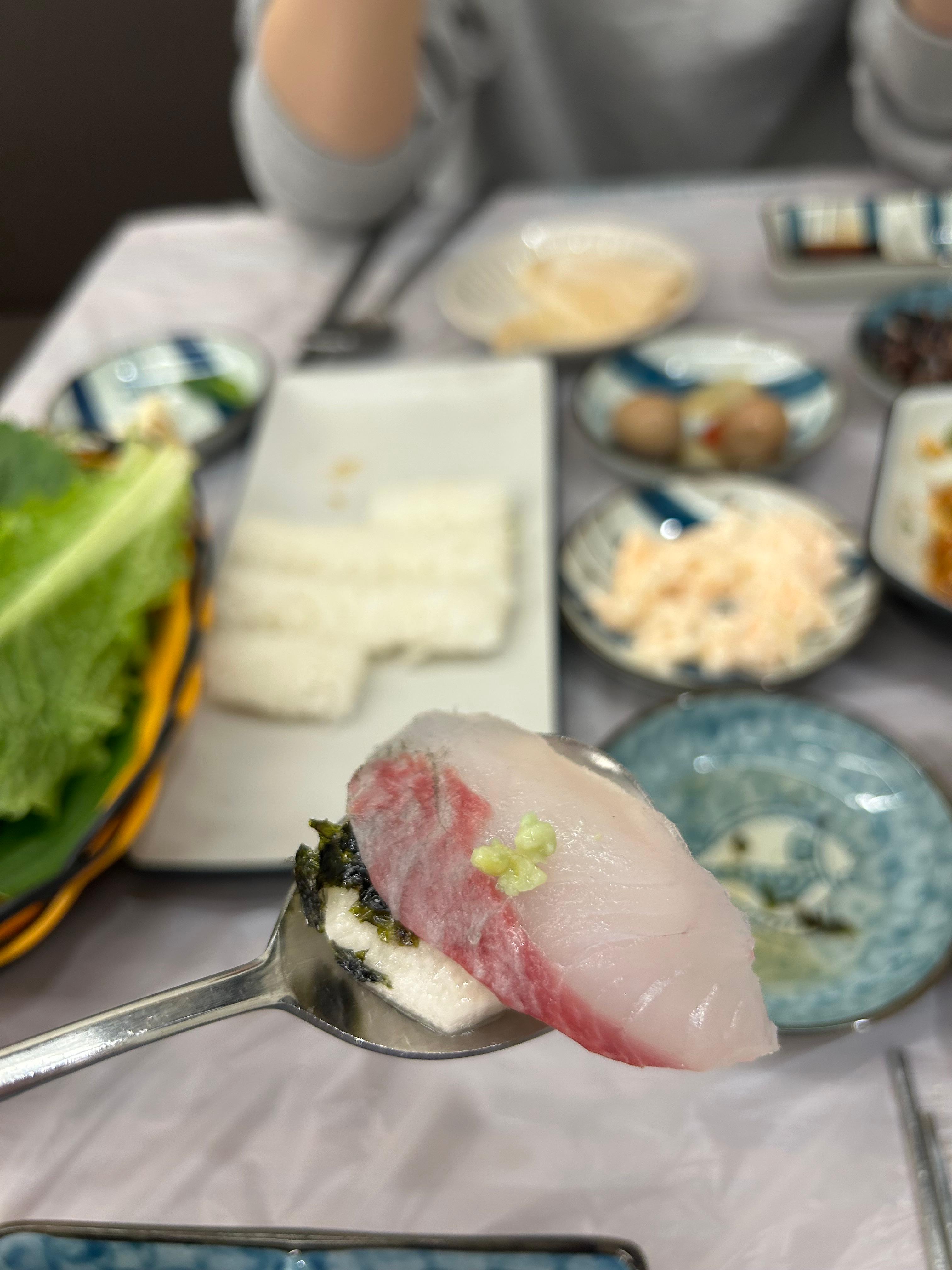 회부터 와사비 살짝 올려 맛을 보니?