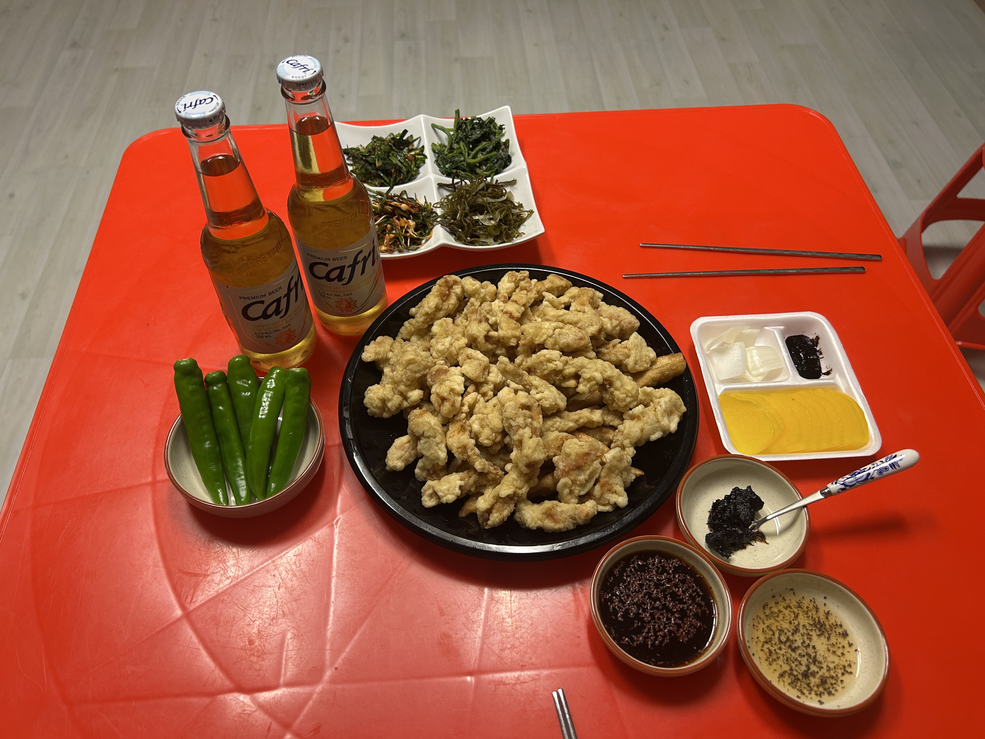 오랜~~만에 탕수육 주문해서 맥주 한잔 하는 걸로.