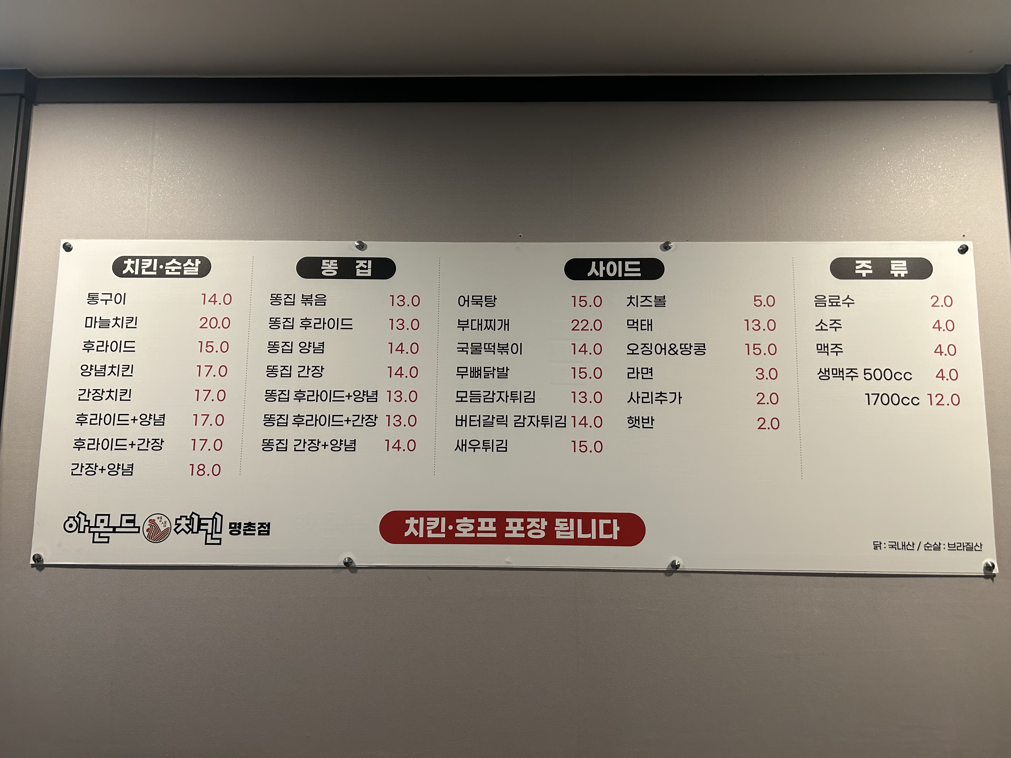 아몬드치킨 명촌점은