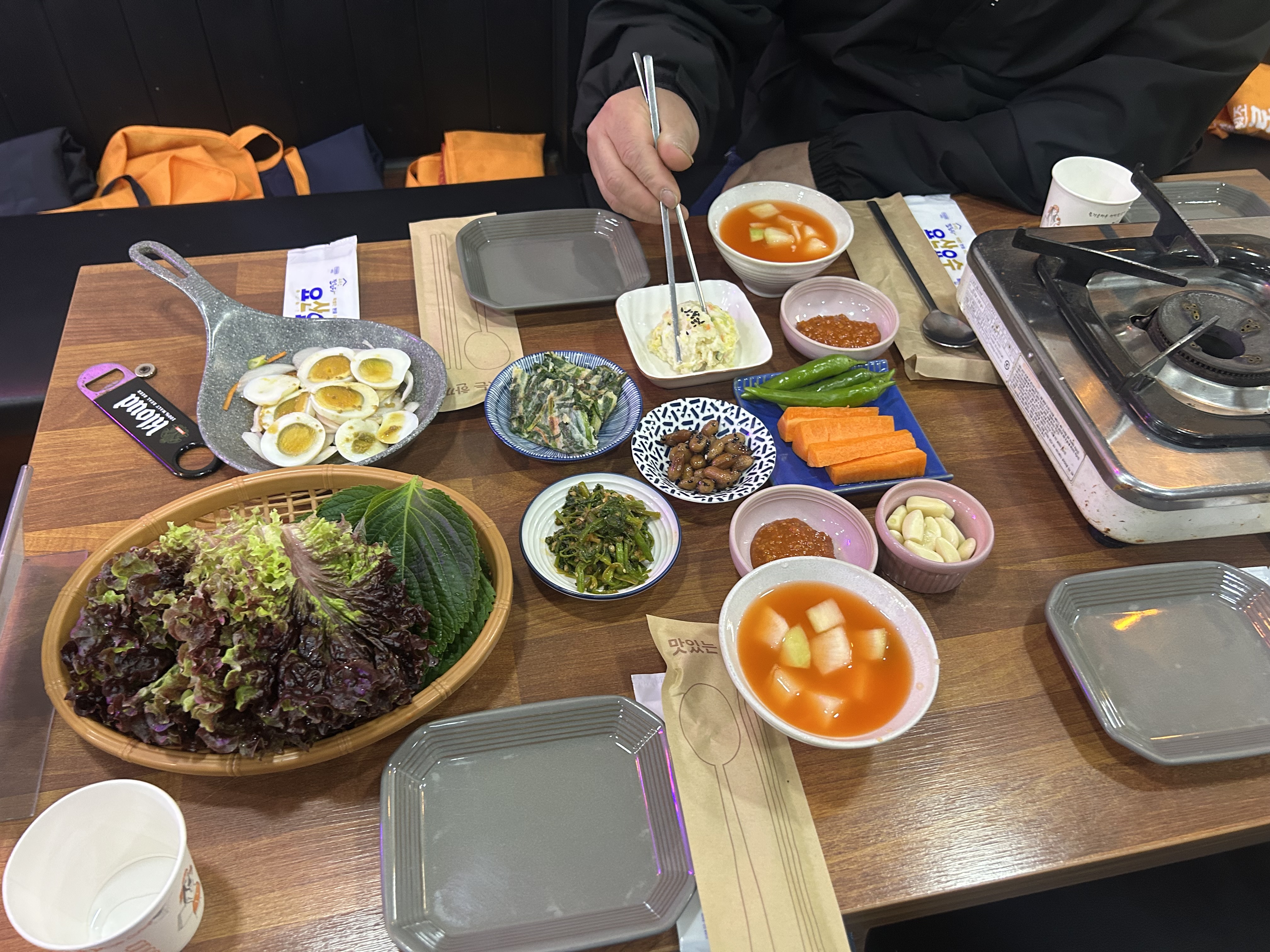 샐러드랑 이것저것 챙겨 온 박경민님.