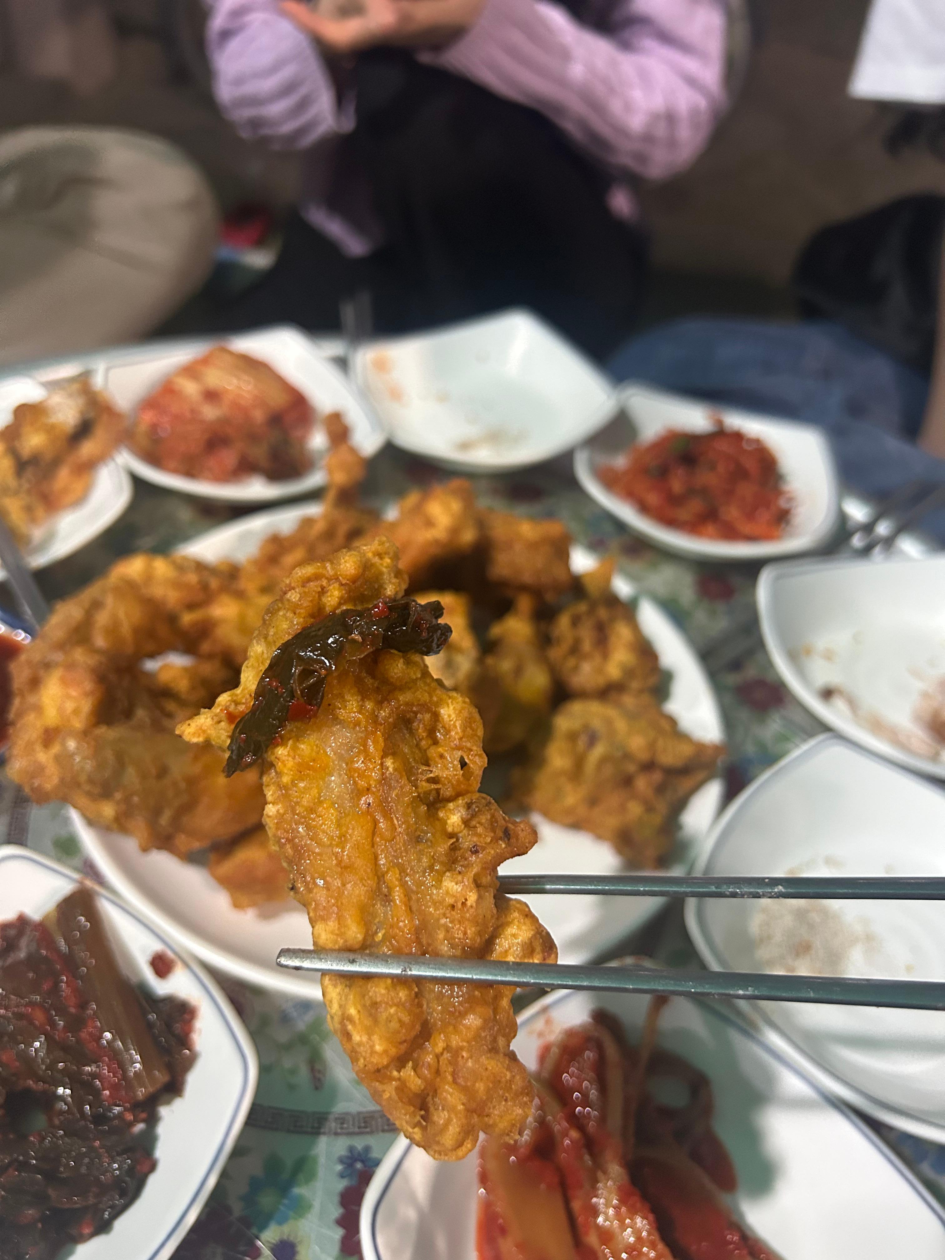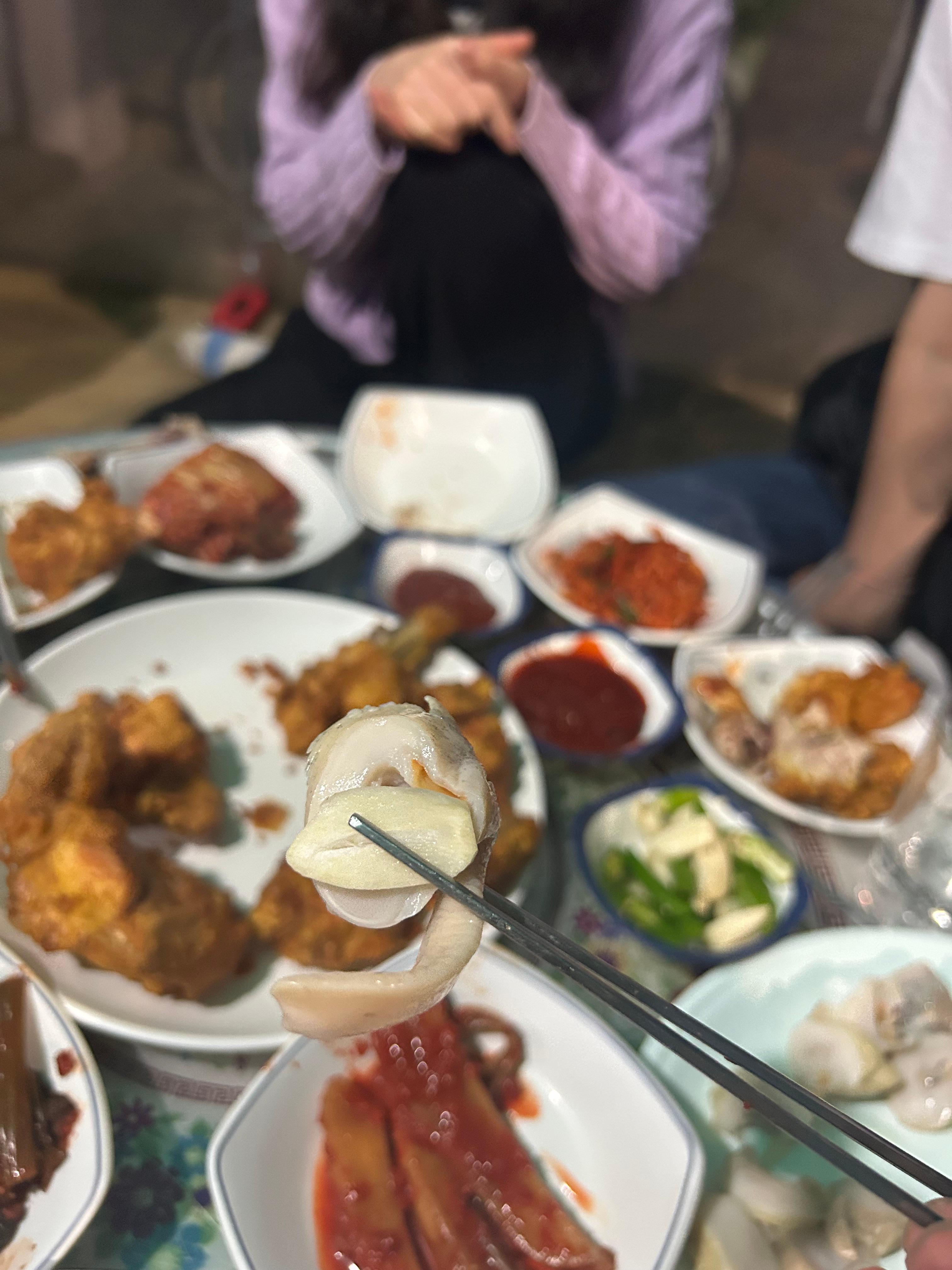 맛나게 치킨이랑 소라 먹고