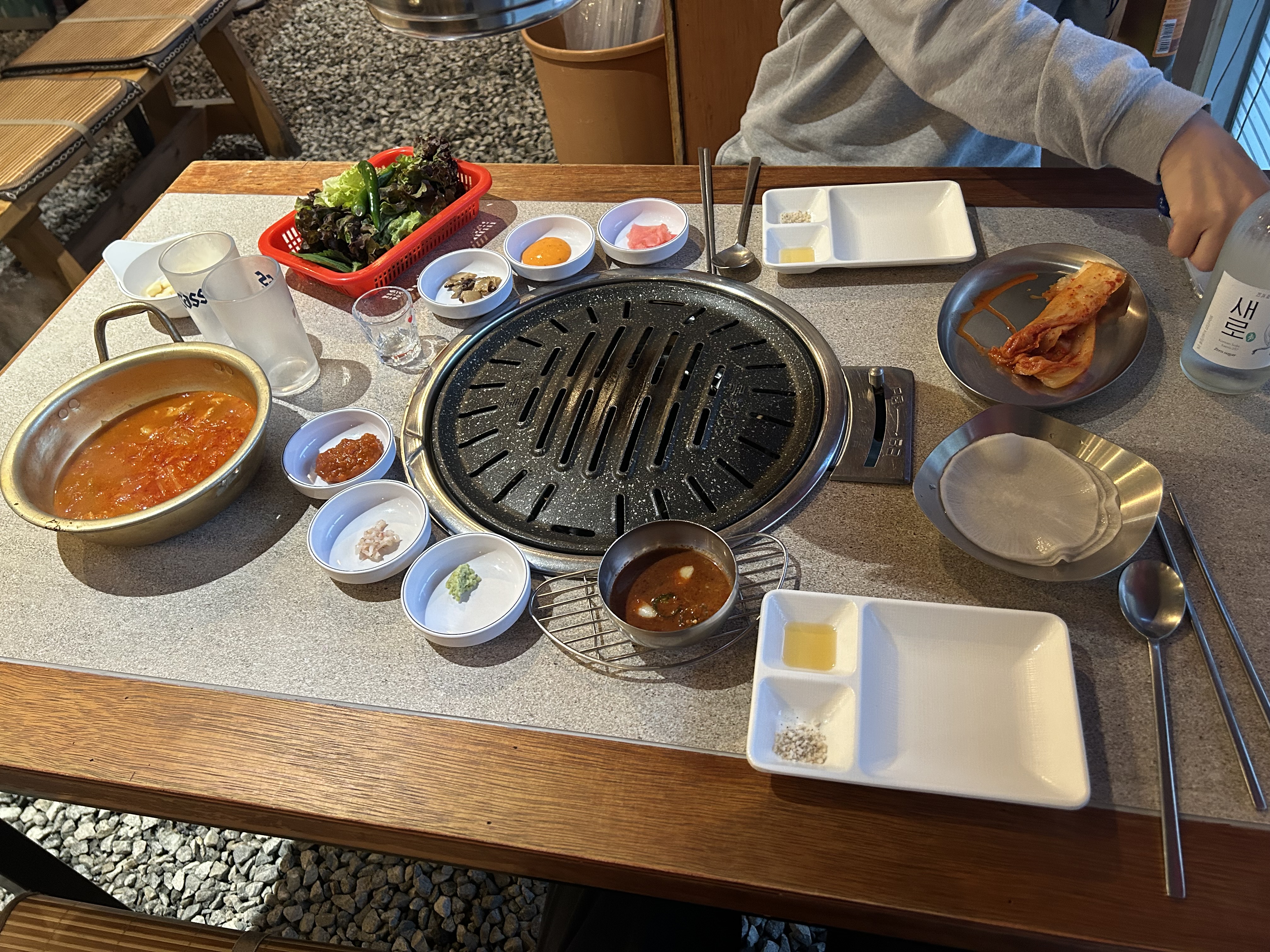 딱 먹기 좋은 밑반찬들로 구성된 까꾸리 식탁.