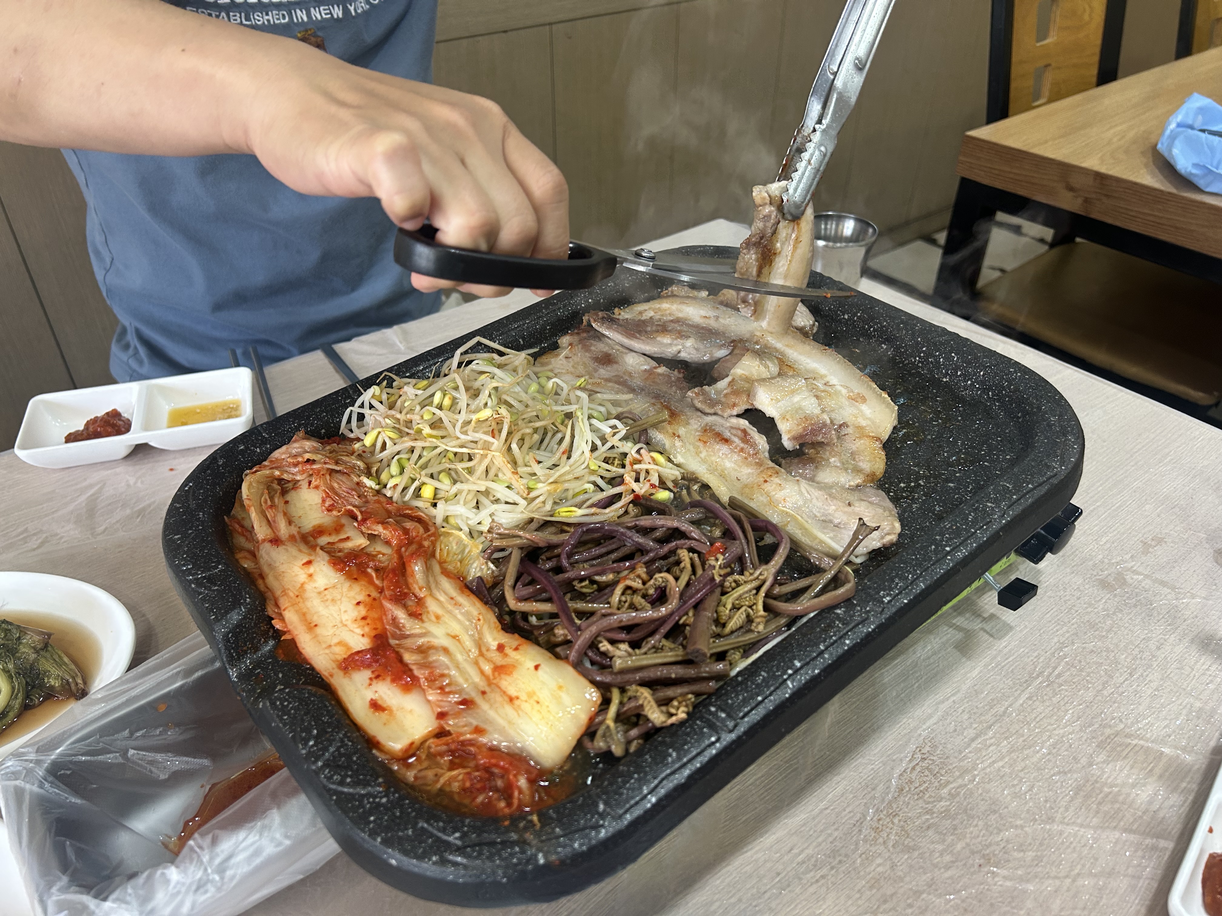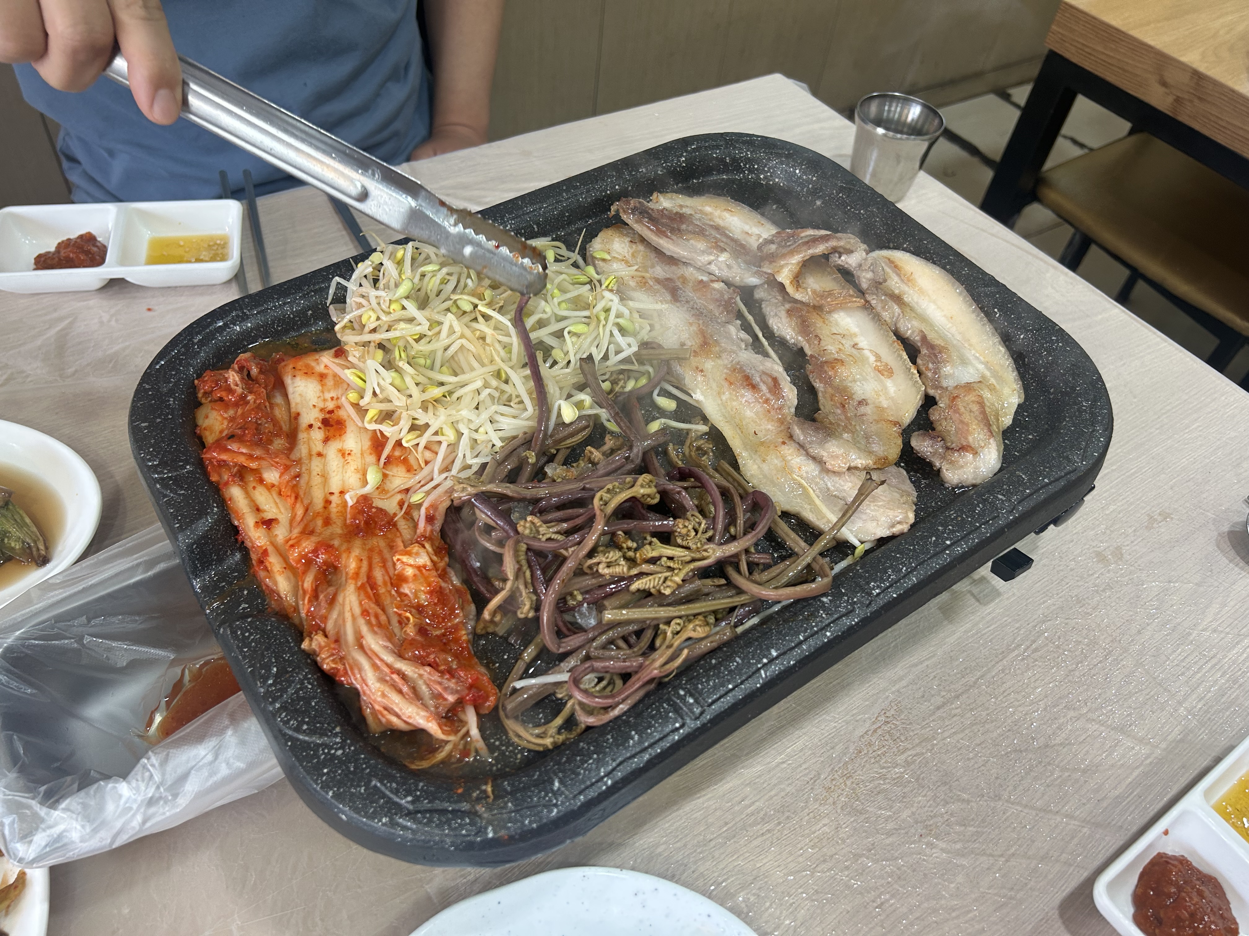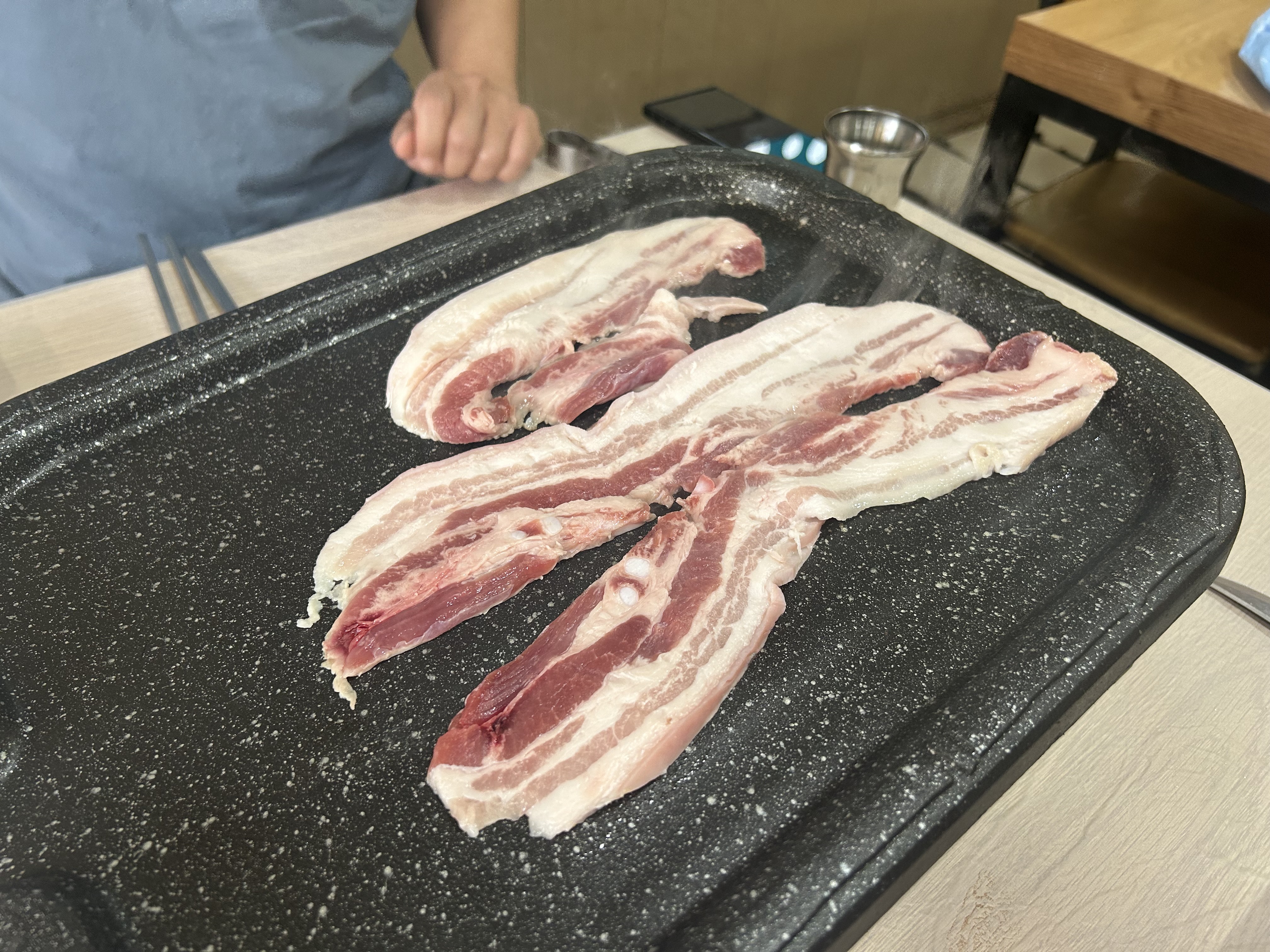 불판 위에 삼겹이 먼저 올리고