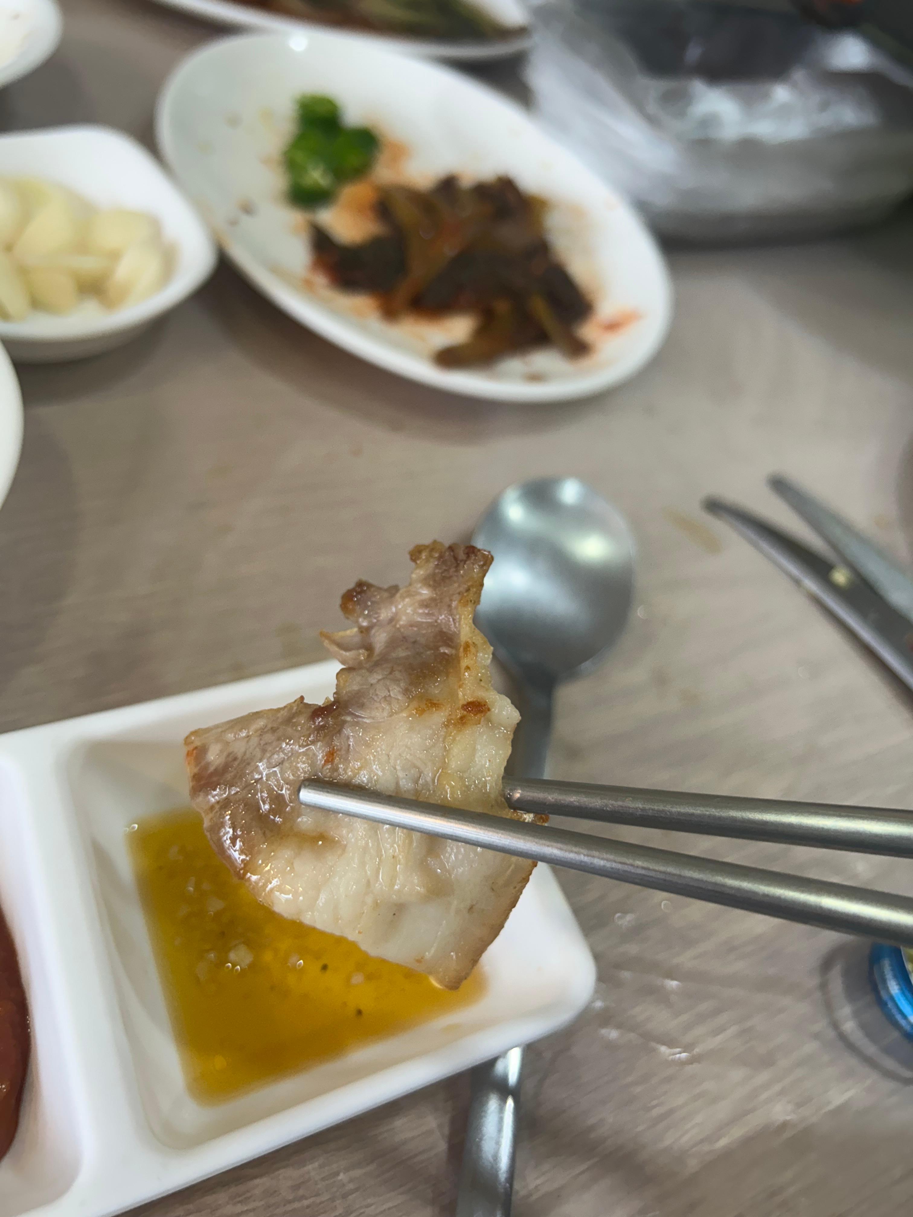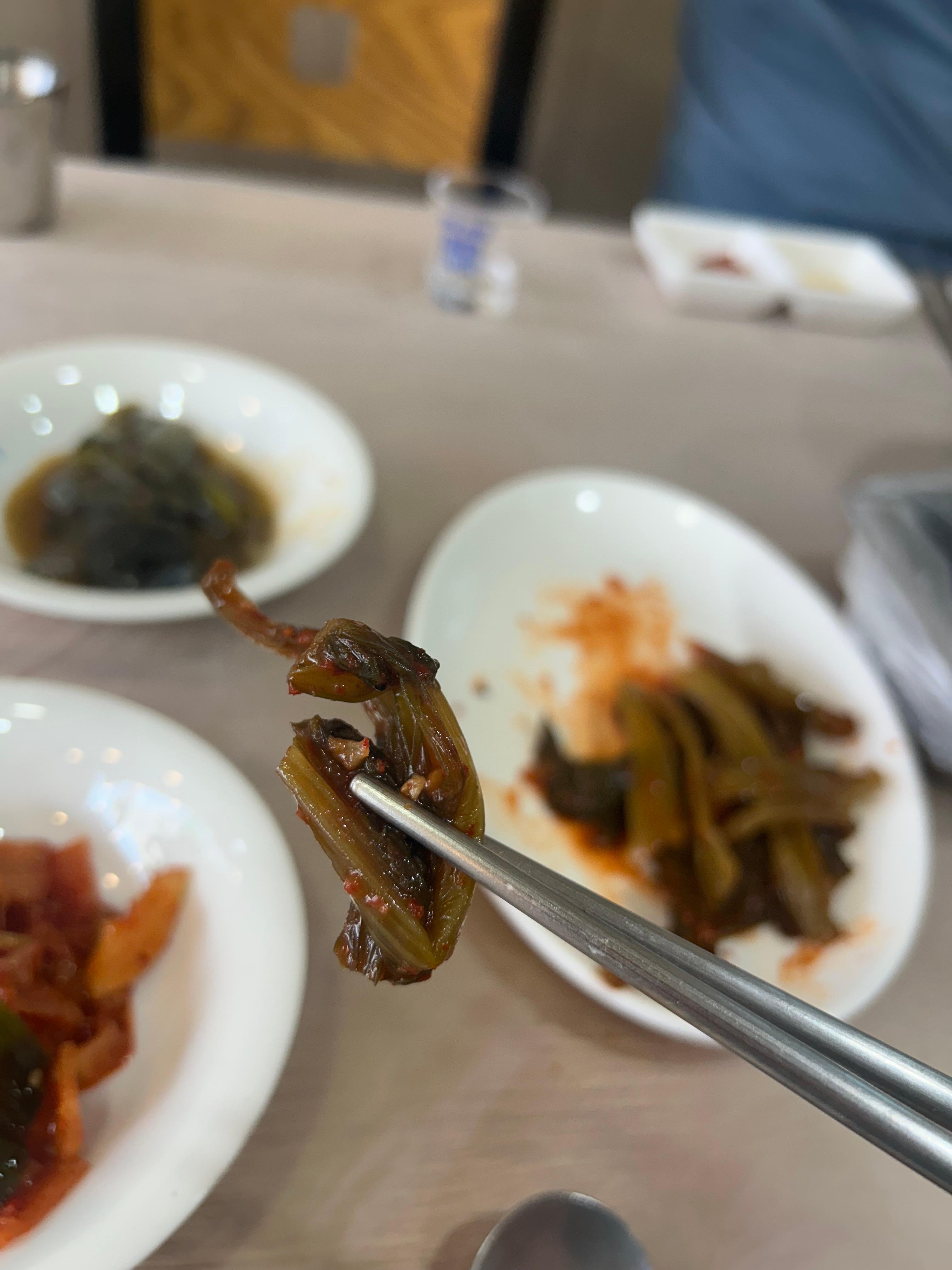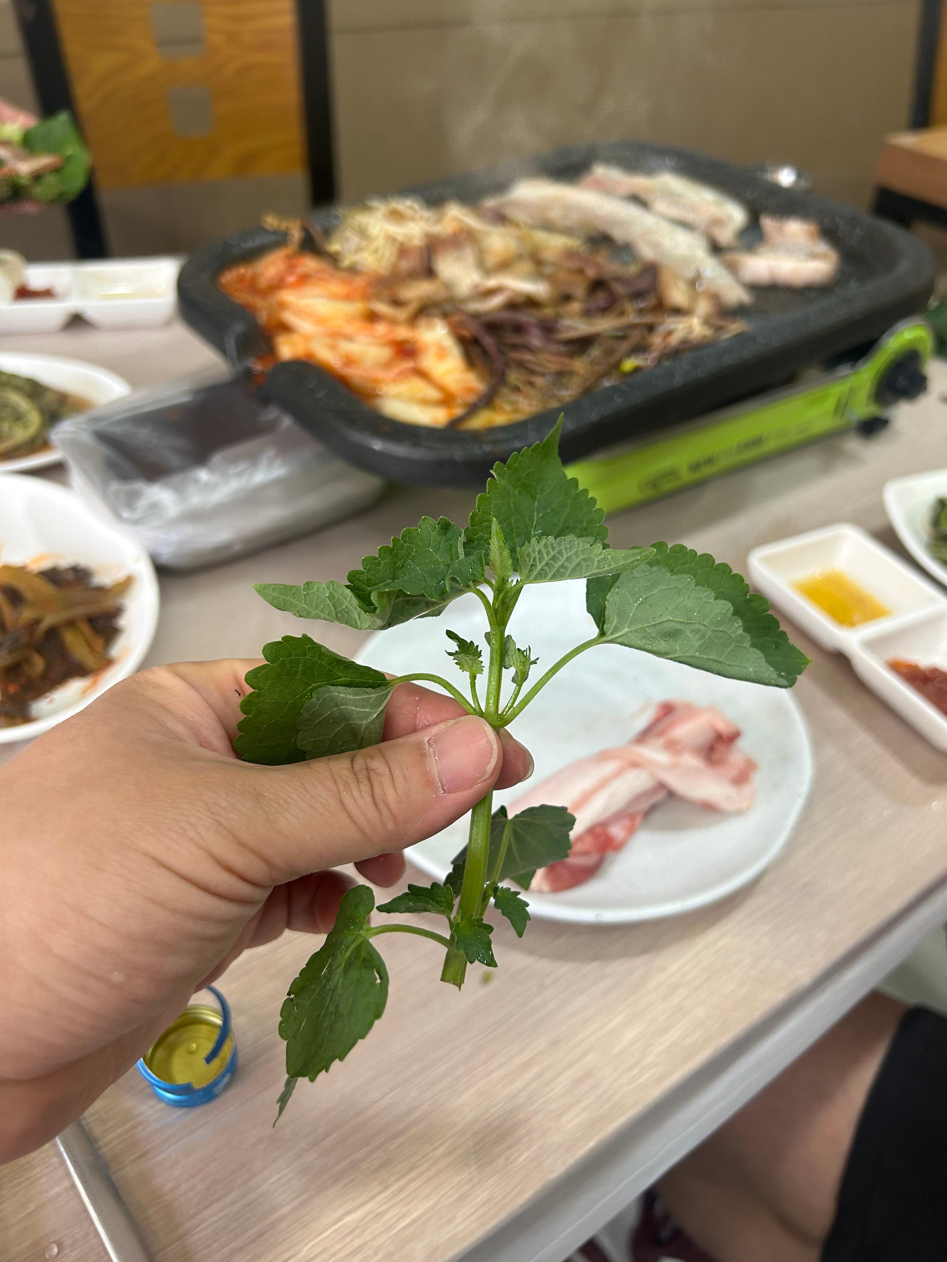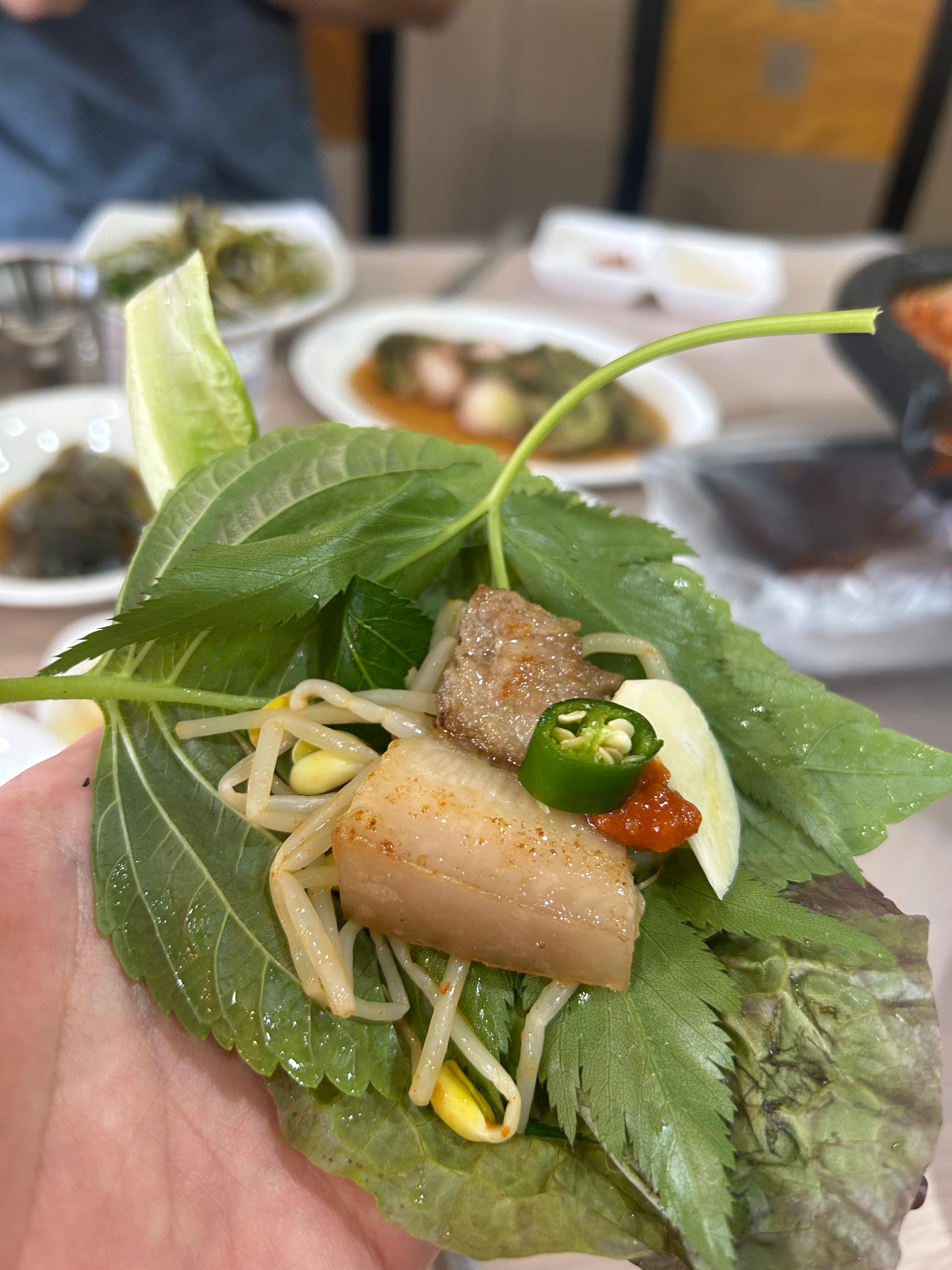 " 쌈에 구운 김치 넣어서 먹어봐봐.
