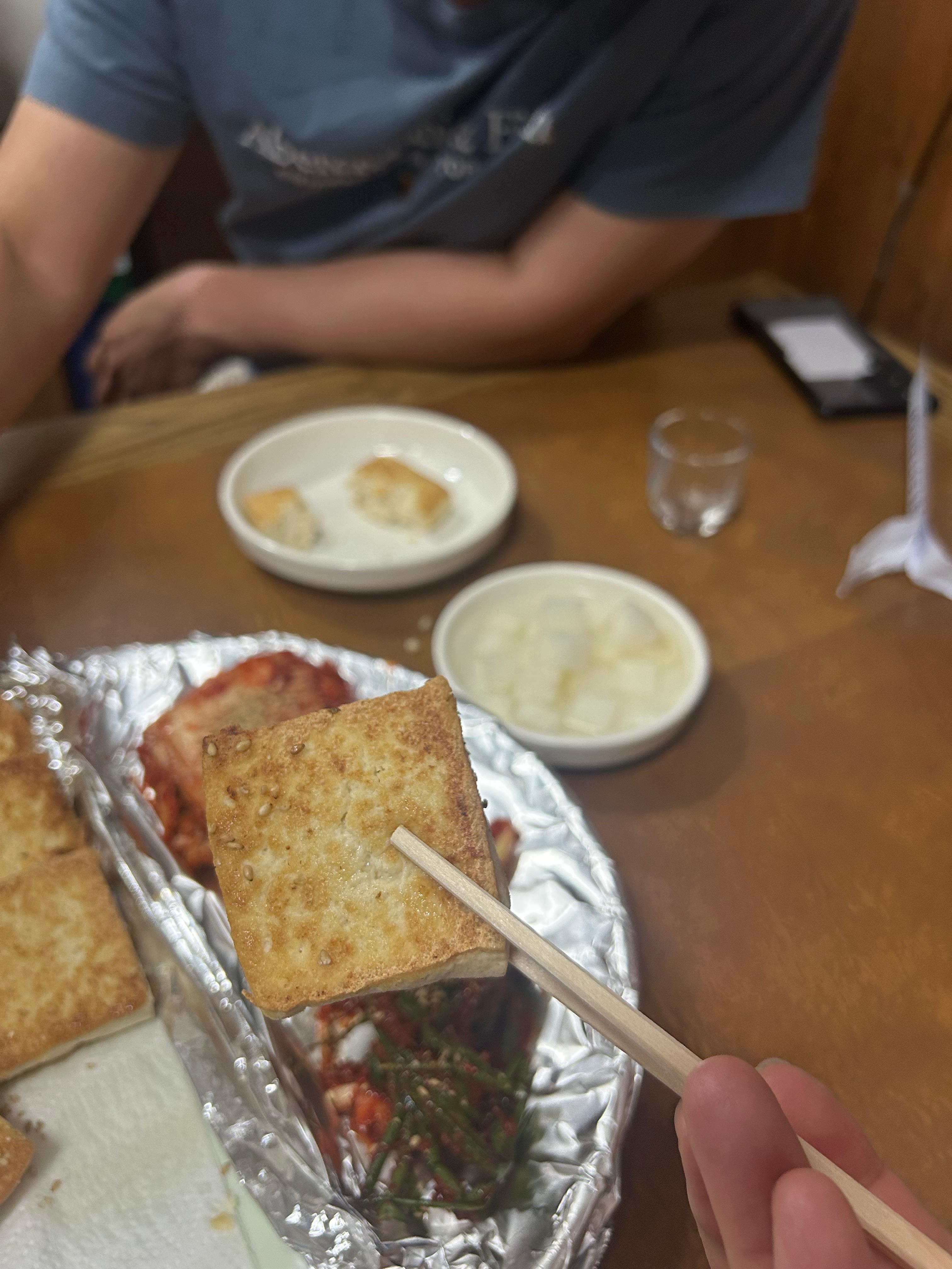 메뉴에 후라이드랑 두부조림 세트가 있네. "