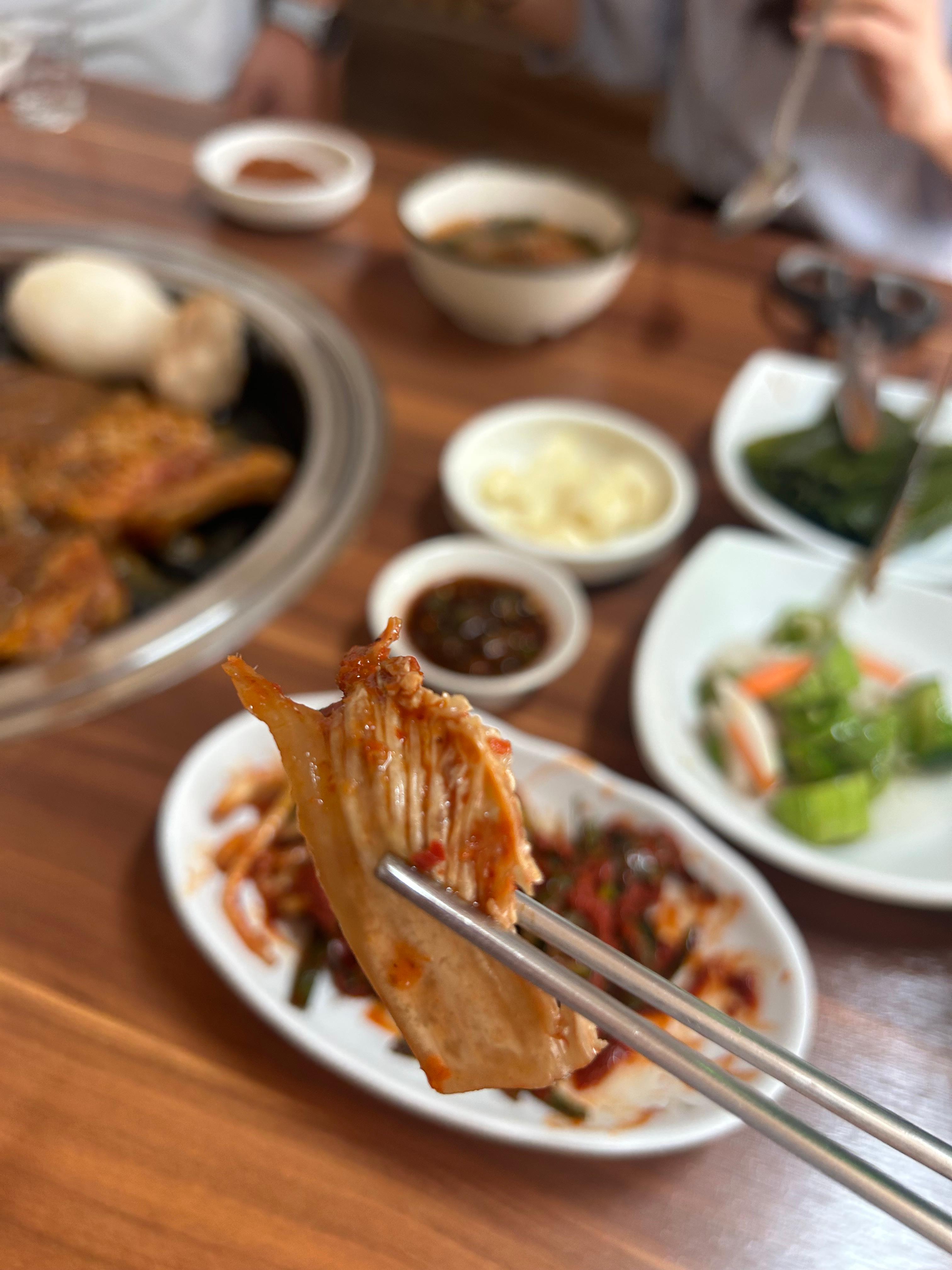 열무김치에 갈비랑 요래 한 젓가락 맛보니?