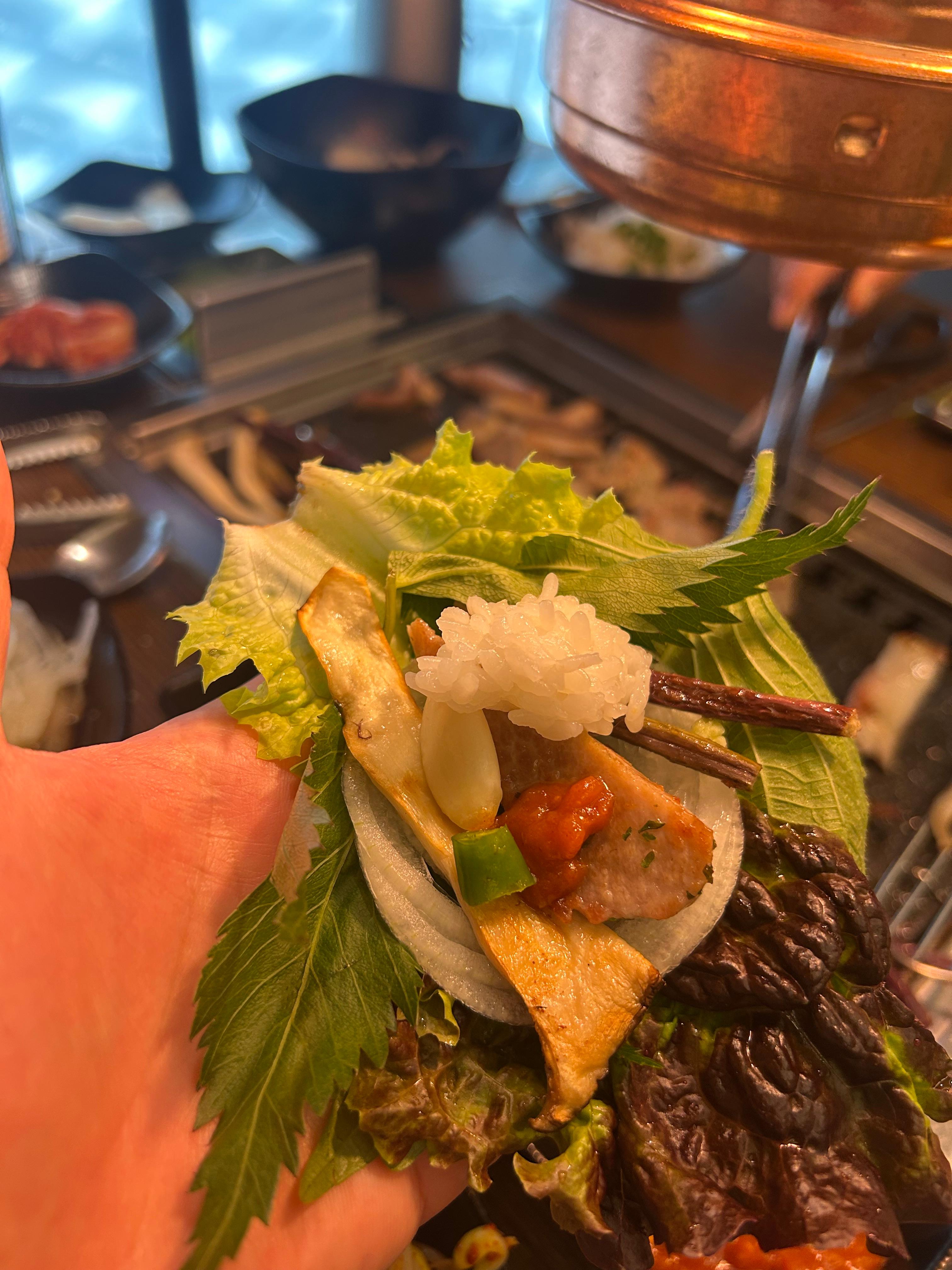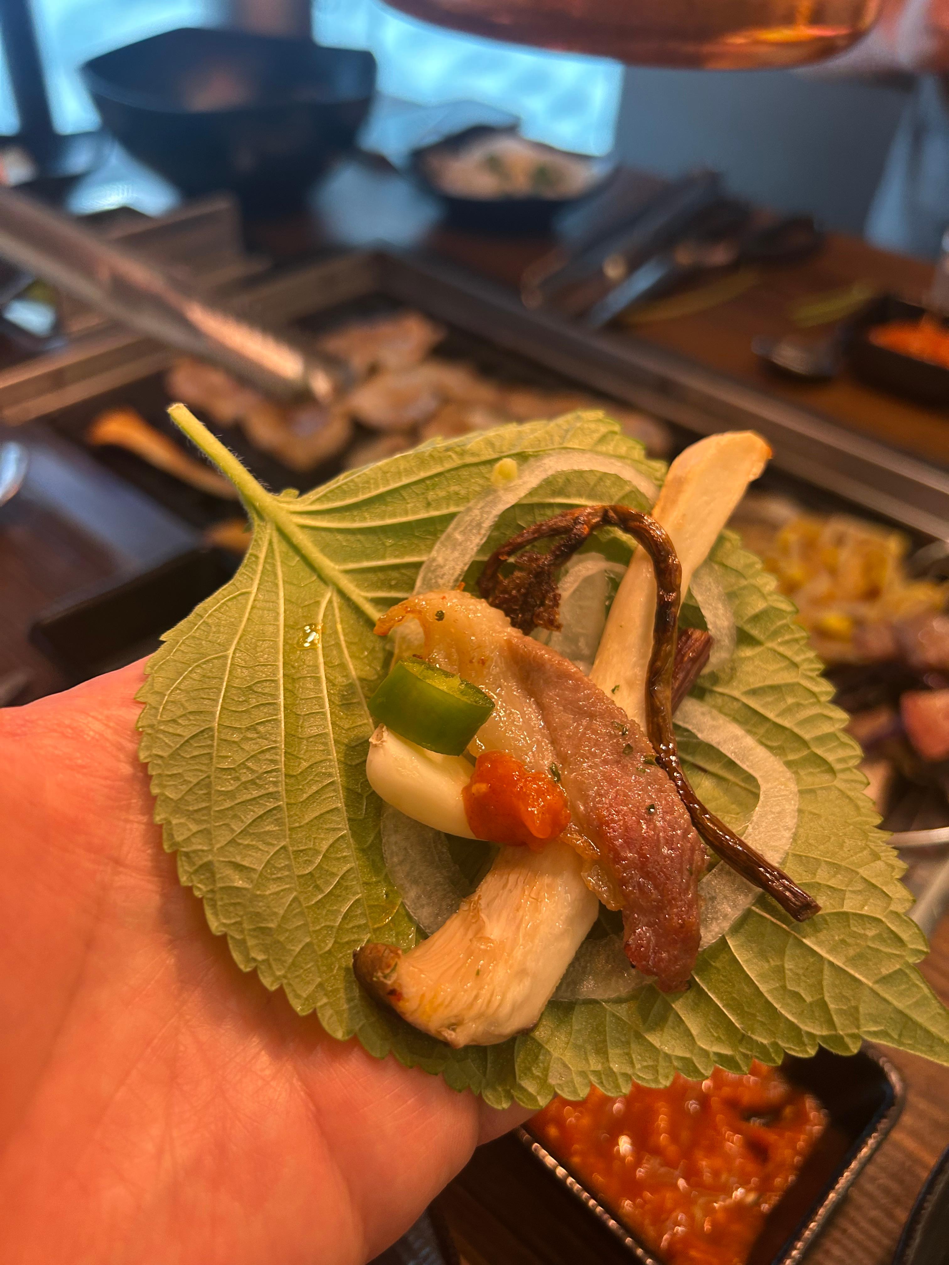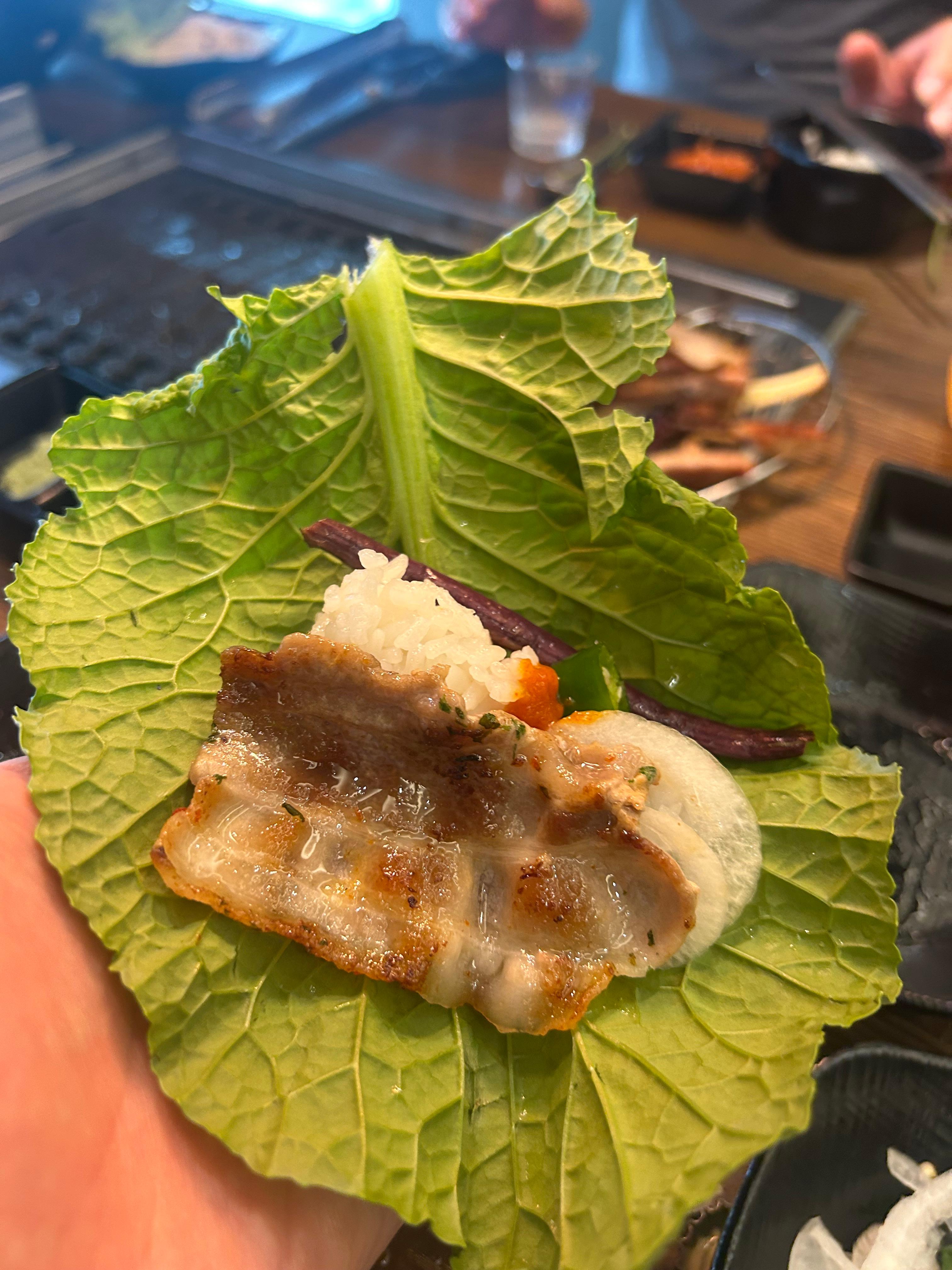 덕분에 쌀밥에 고기 넣고 크~게 한쌈 싸서?