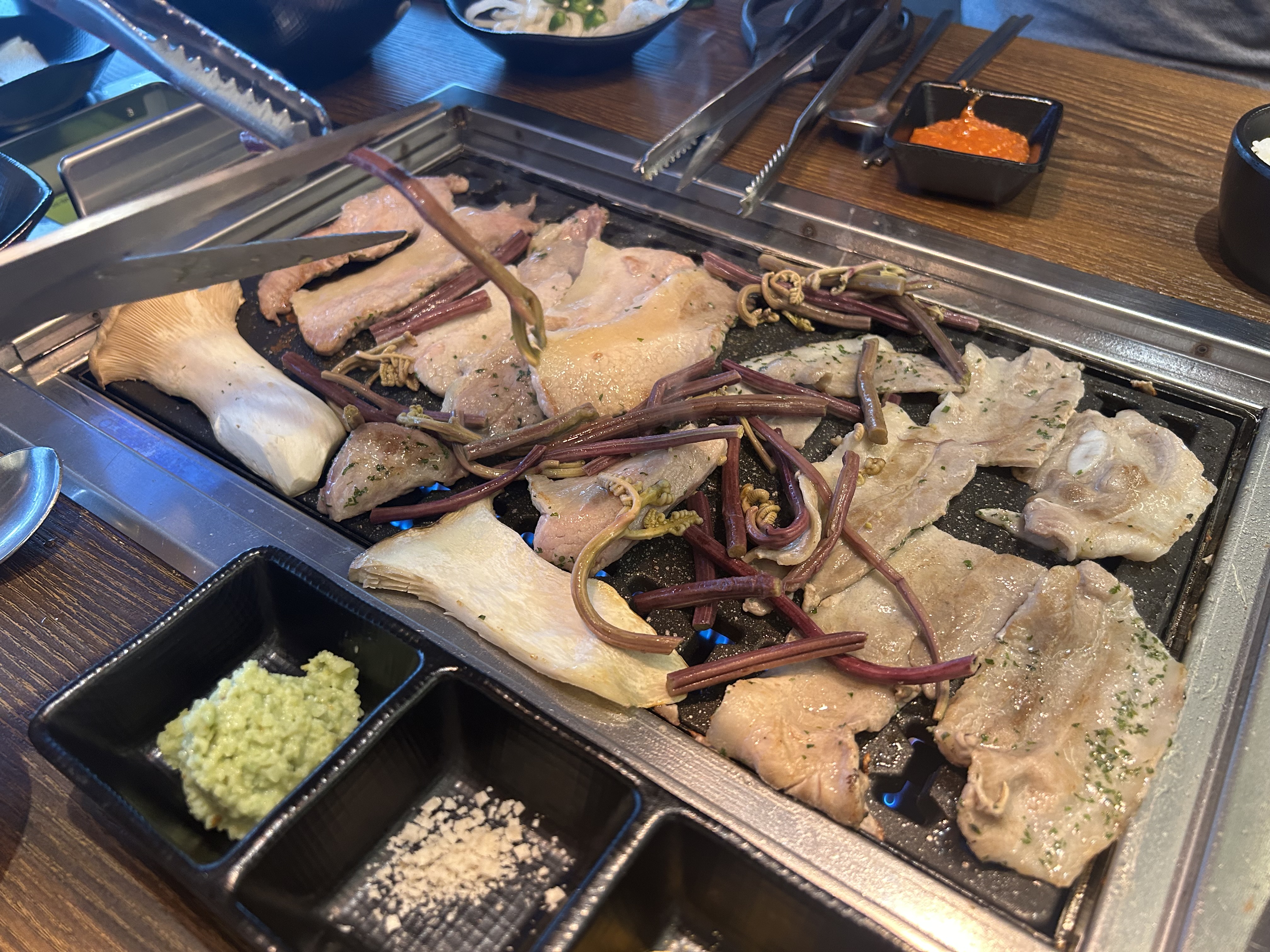" 불판에 너무 많이 올린 거 아닌가요? "