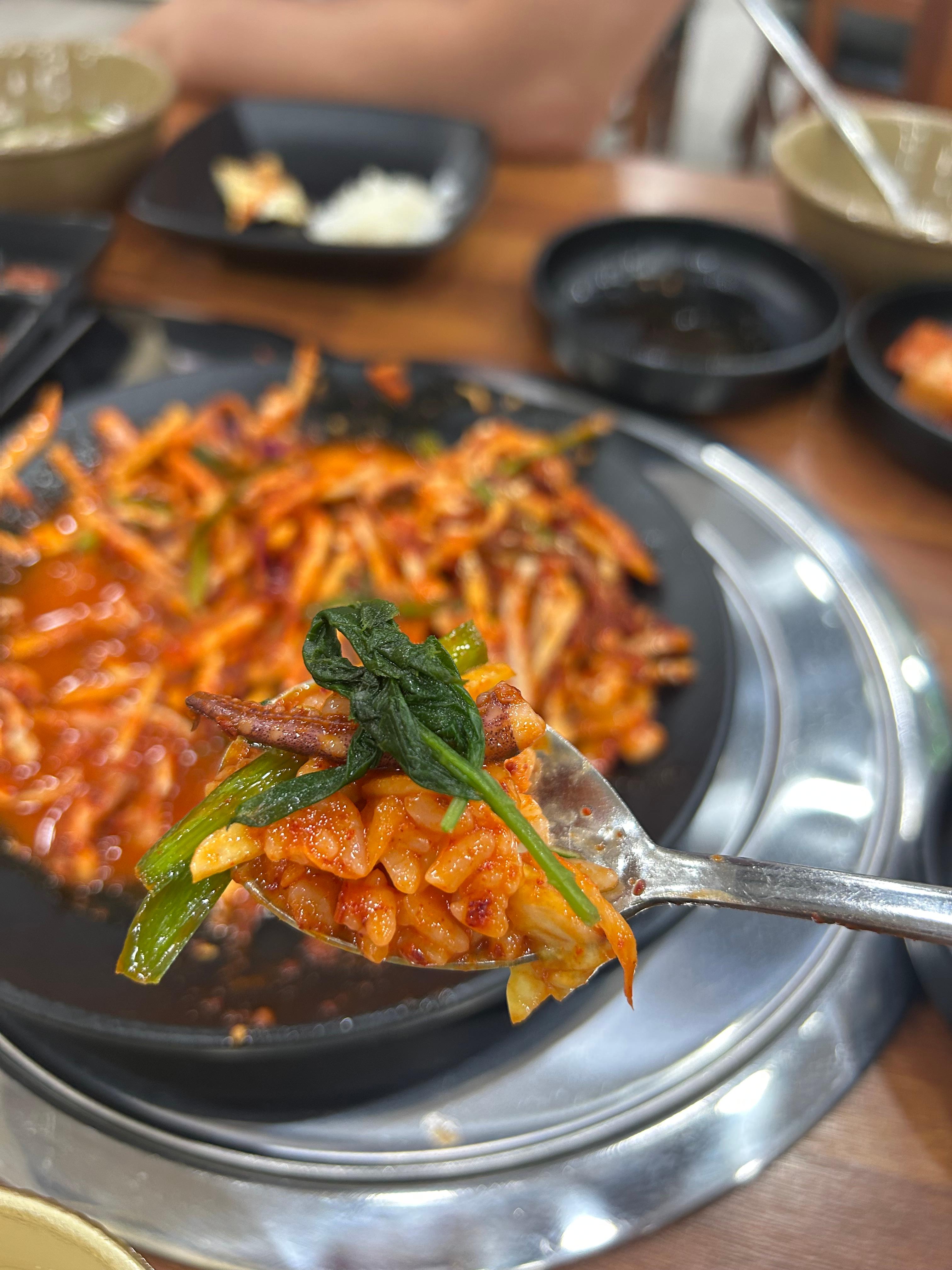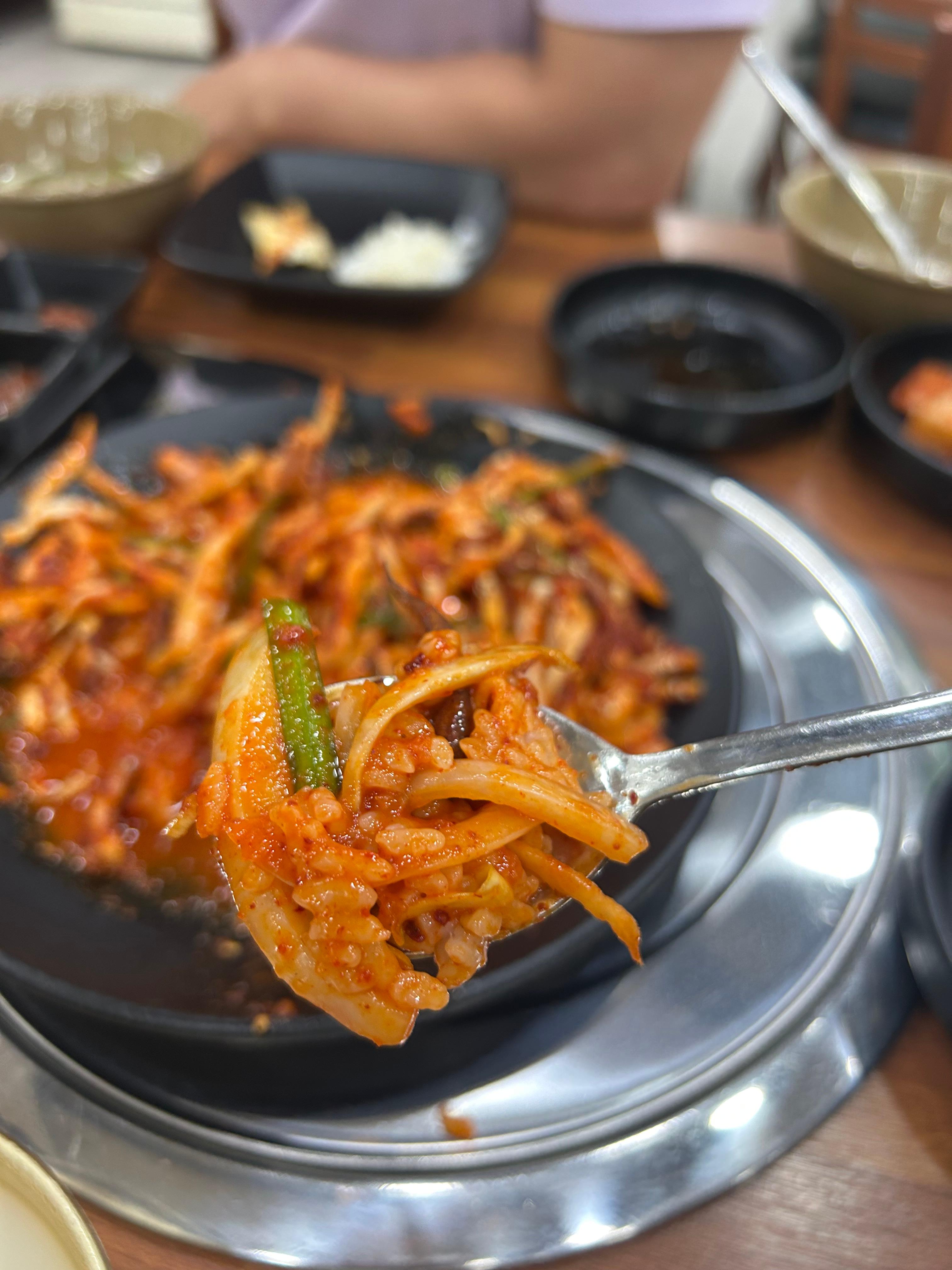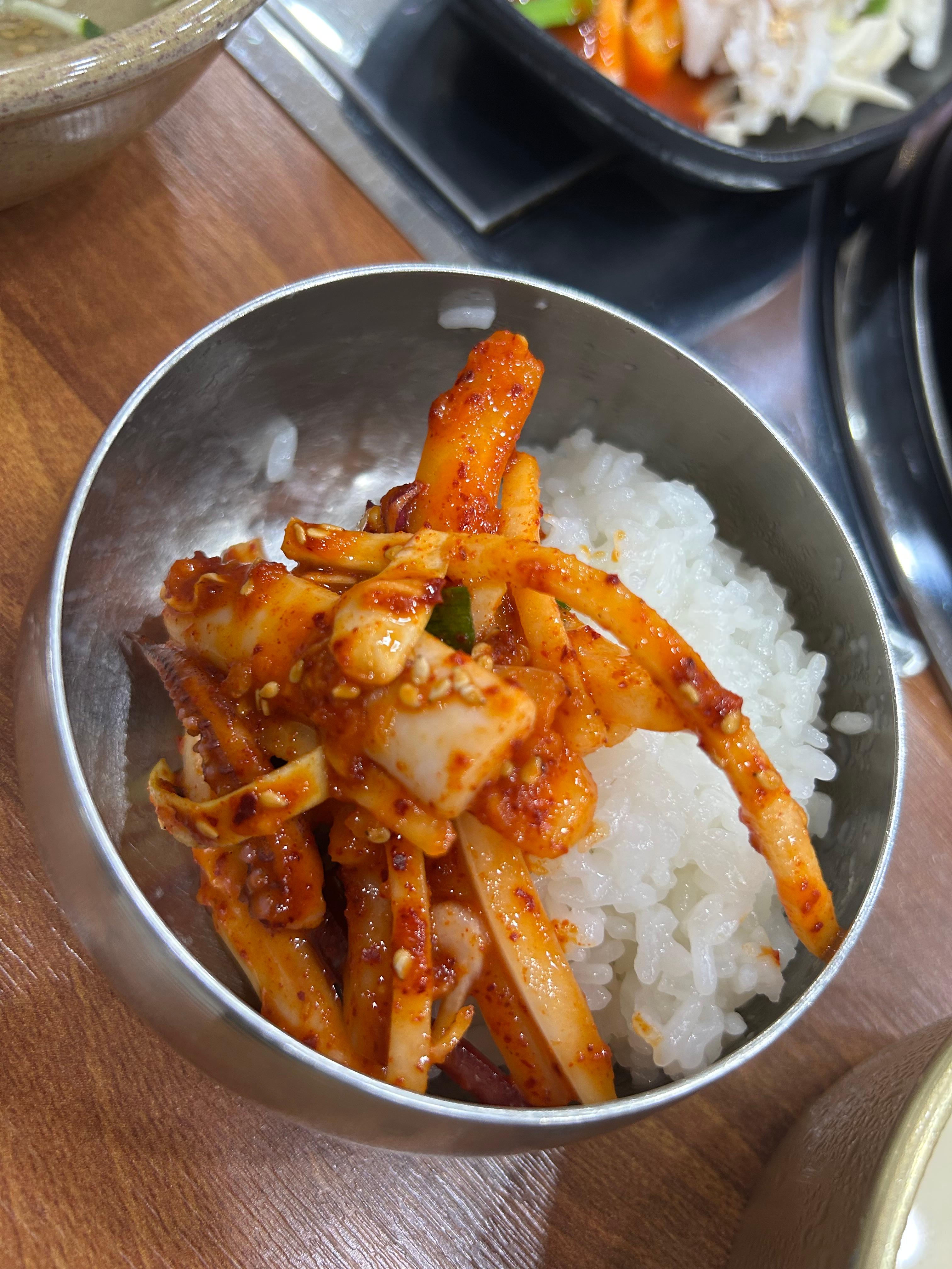 공깃밥에 오징어무침 넣고