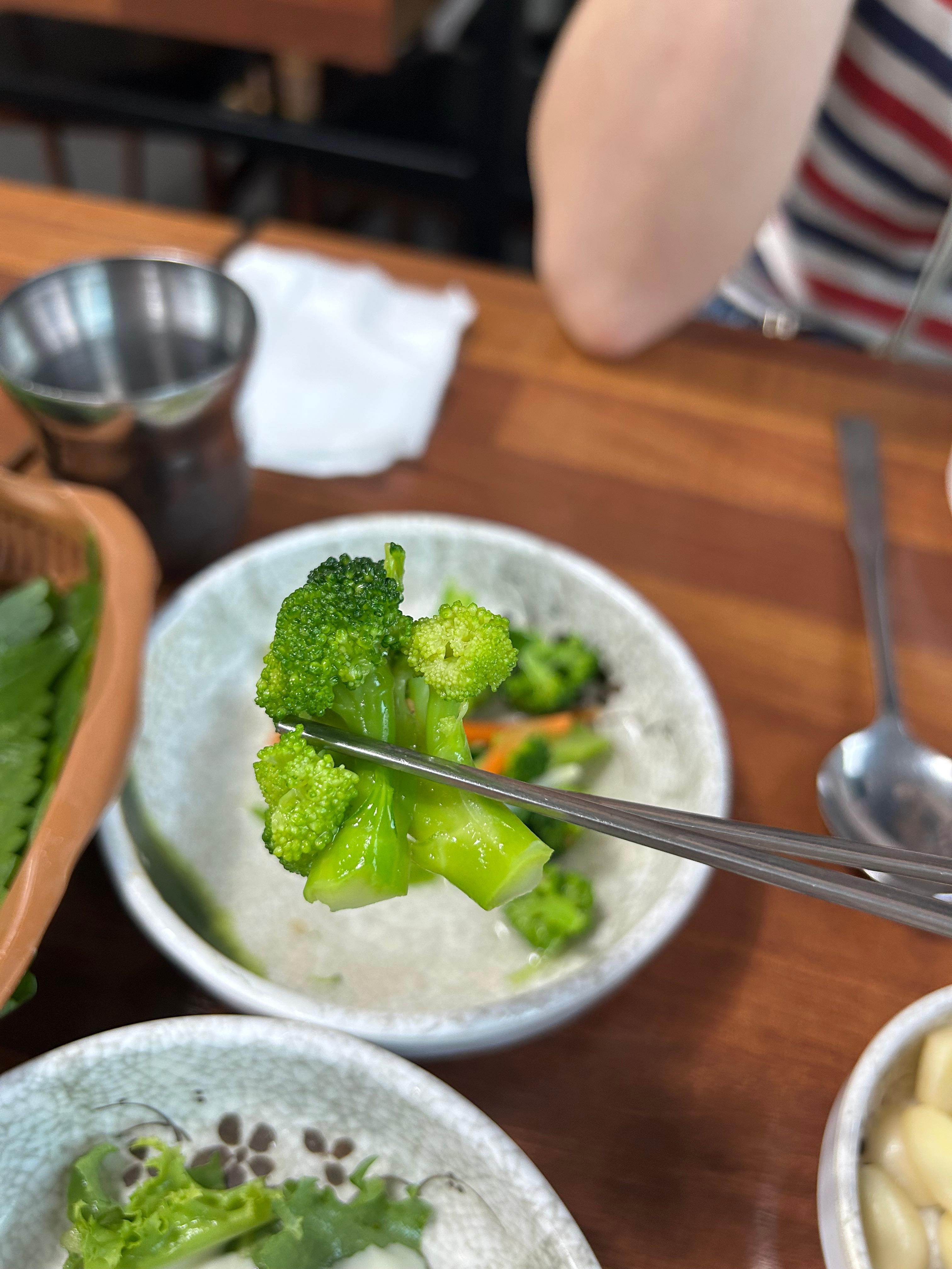 브로콜리 너마저까지 한 젓가락씩 맛을 보니?