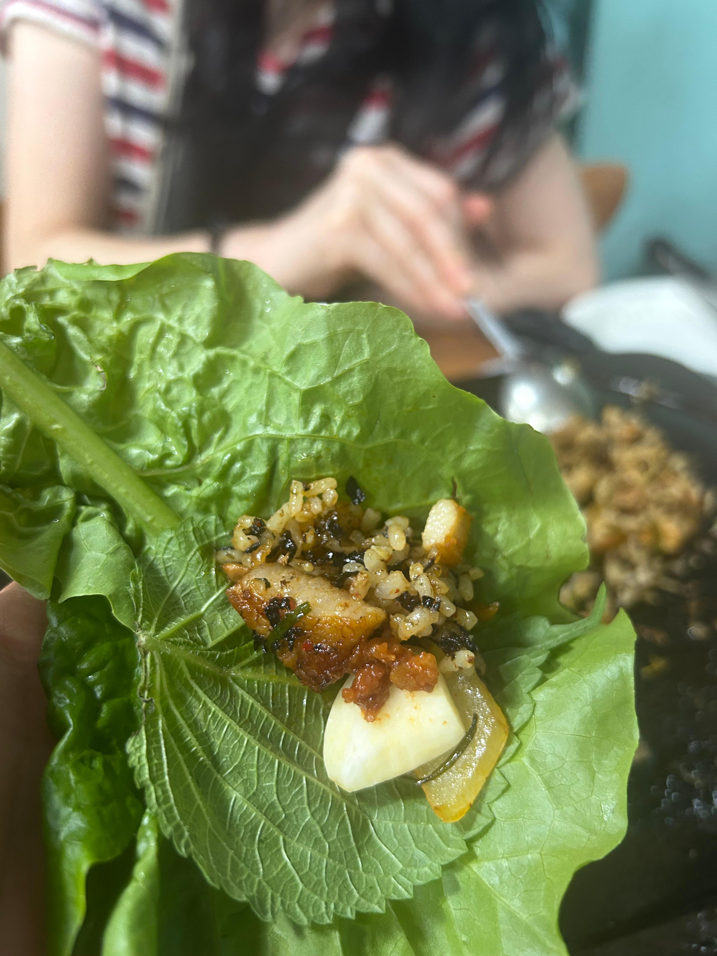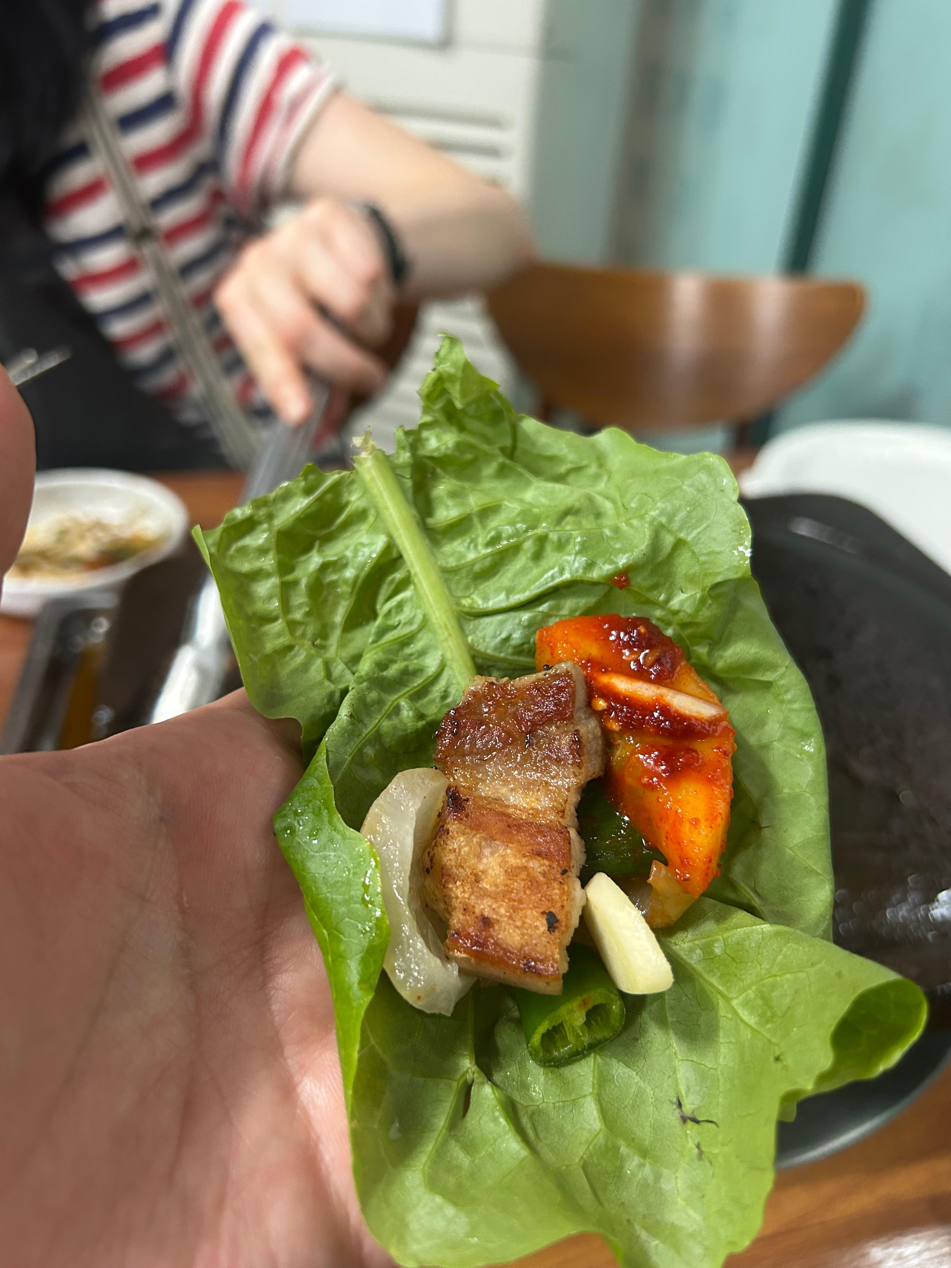 구운 김치랑 요래 쌈도 부지런히 싸서 맛나게 냠냠.