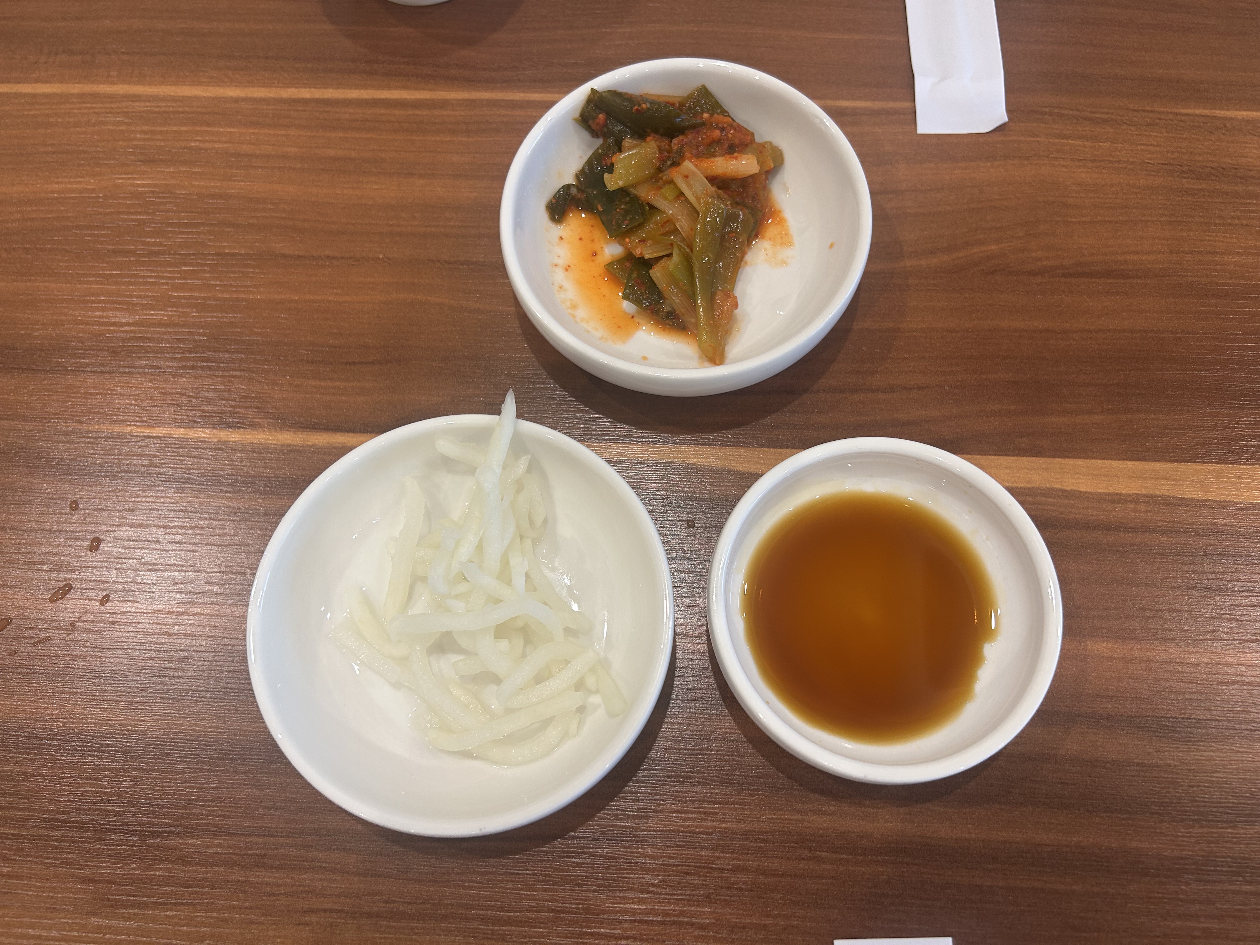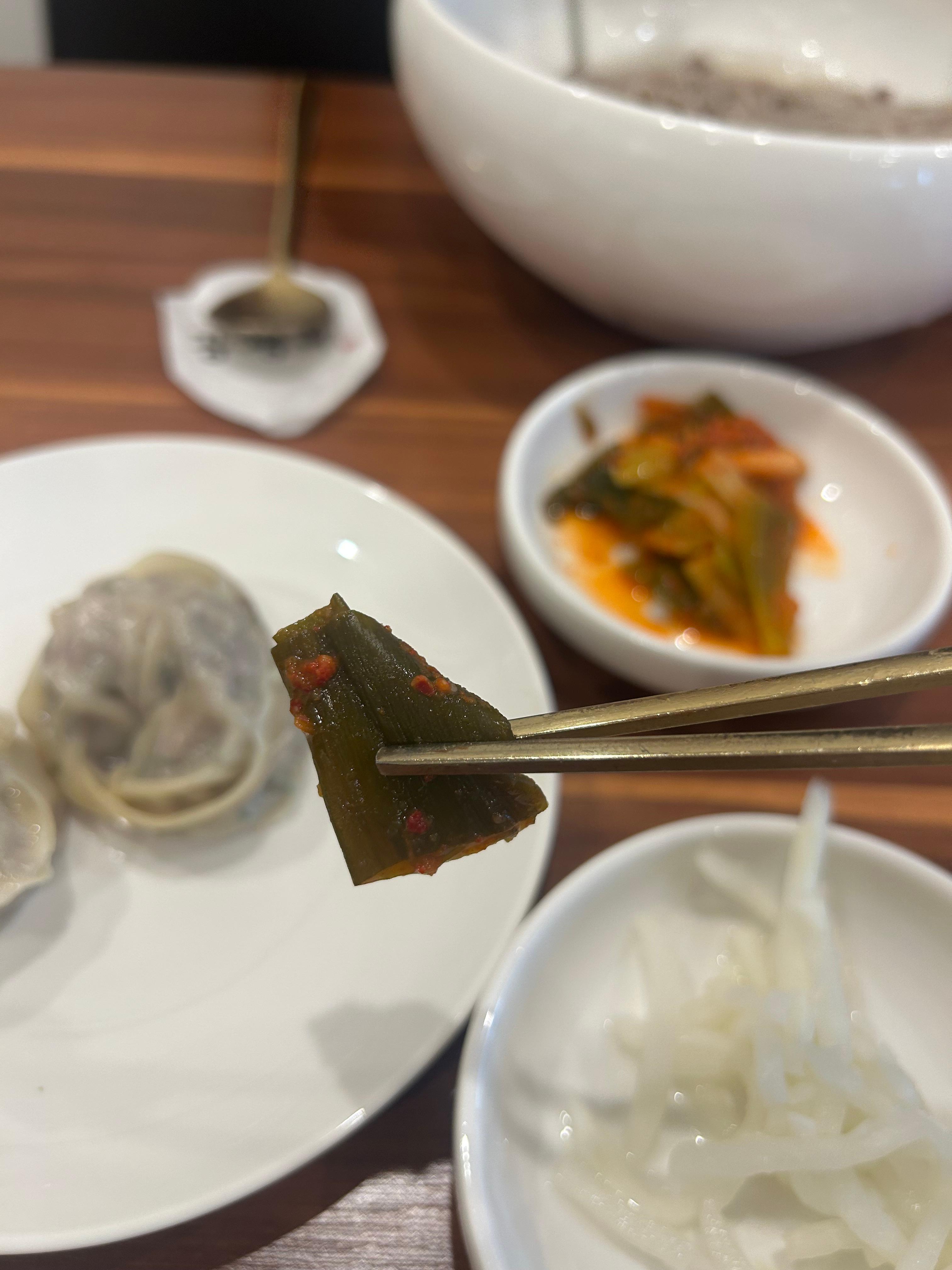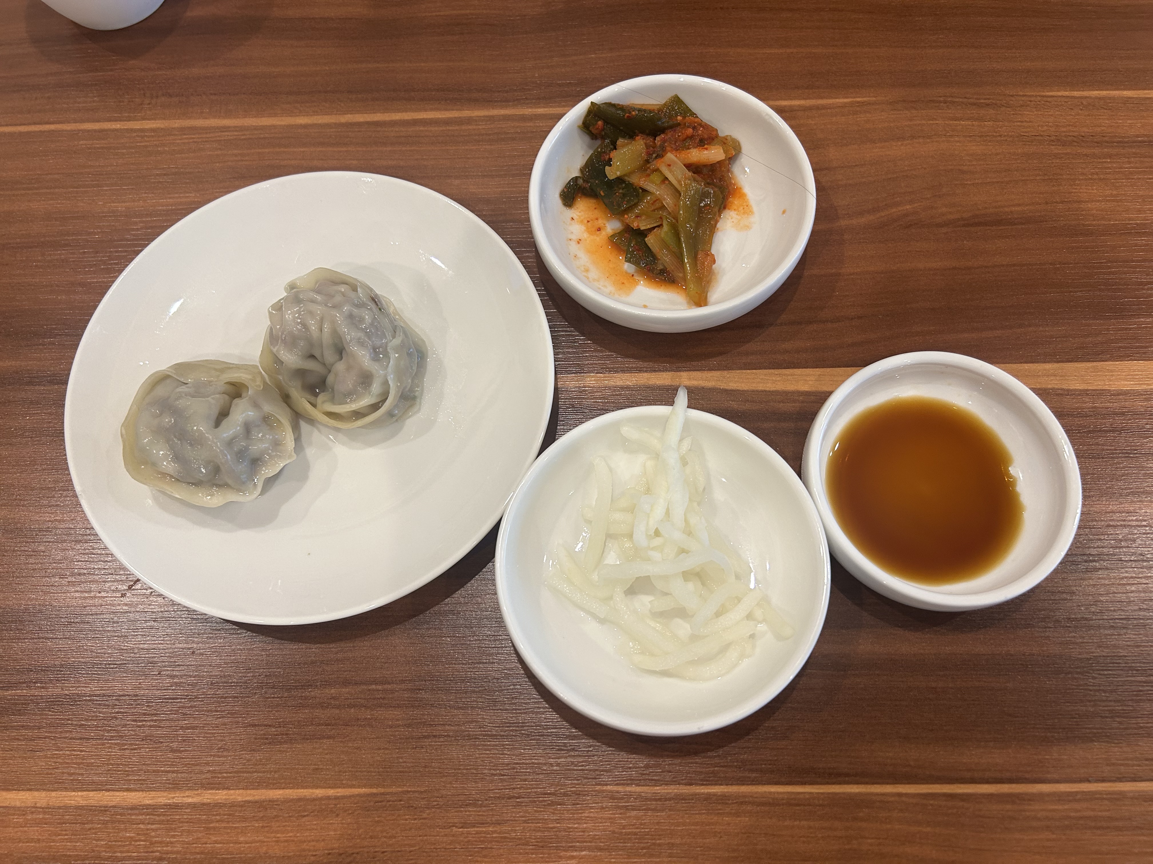 밑반찬과 만두 찍어먹을 간장이 등장.