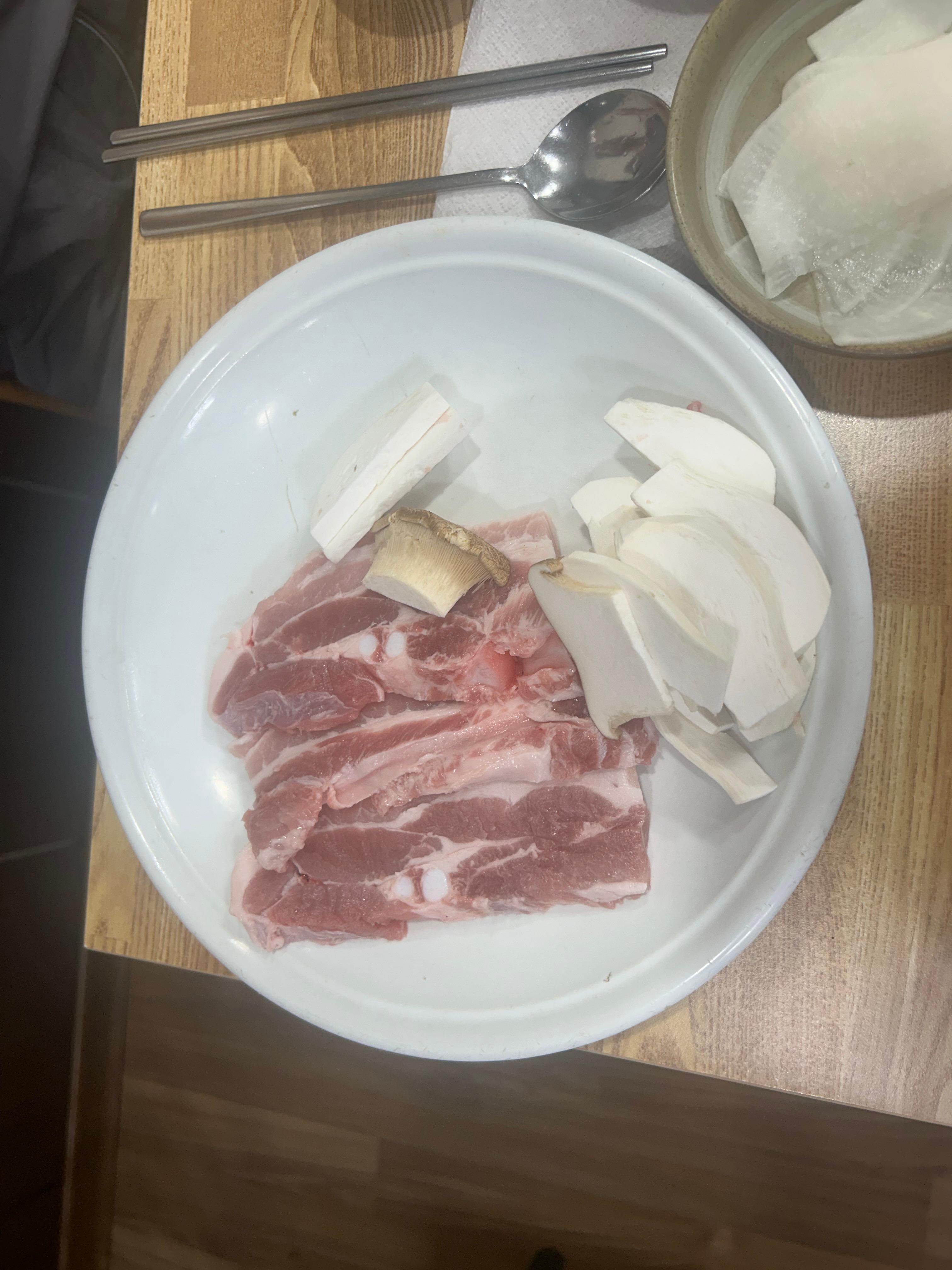 흐름 끊기기 전에 삼겹살 추가로 올려주고