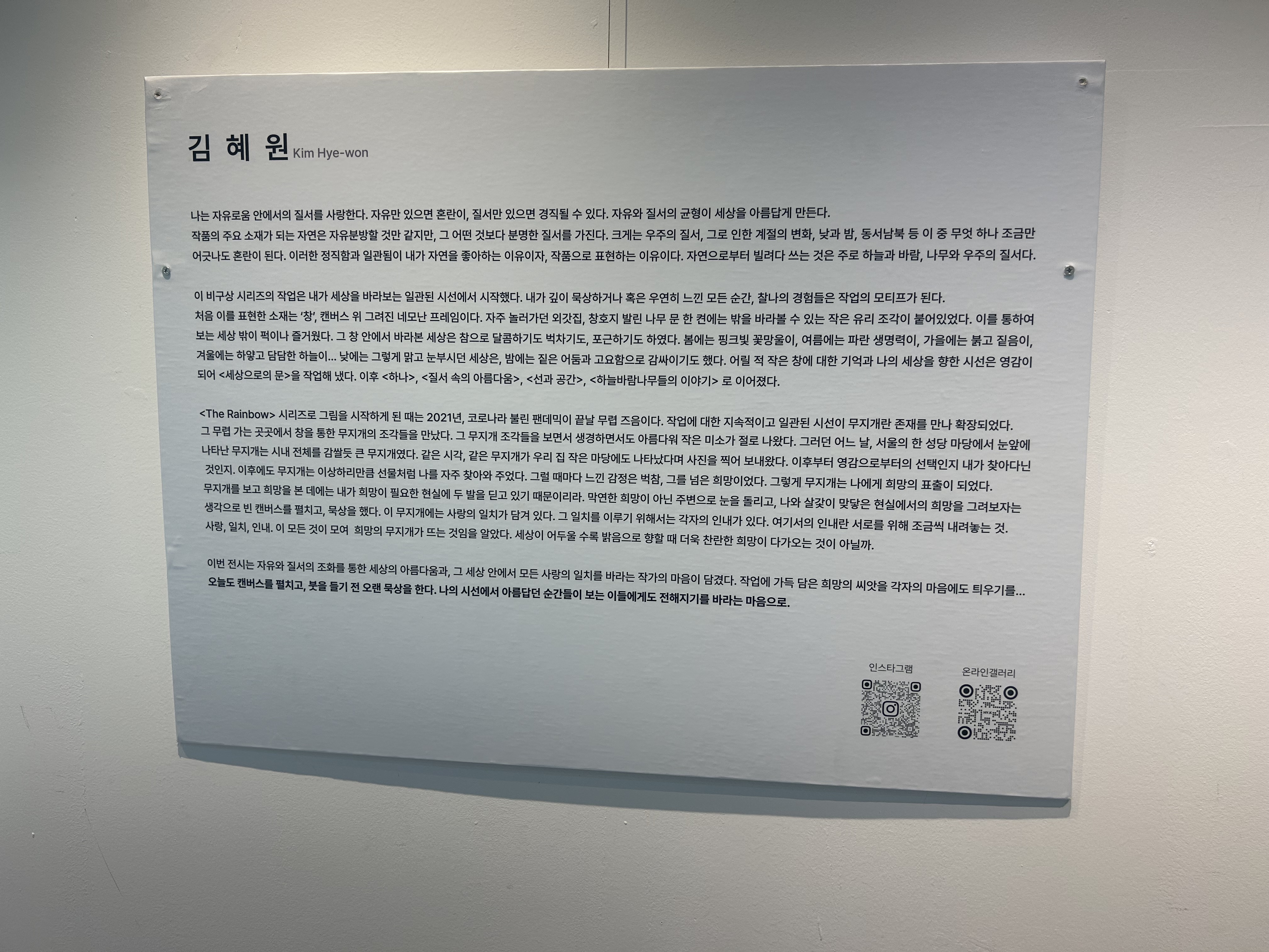 김혜원 작가님 개인전이 열리고 있나봐. "