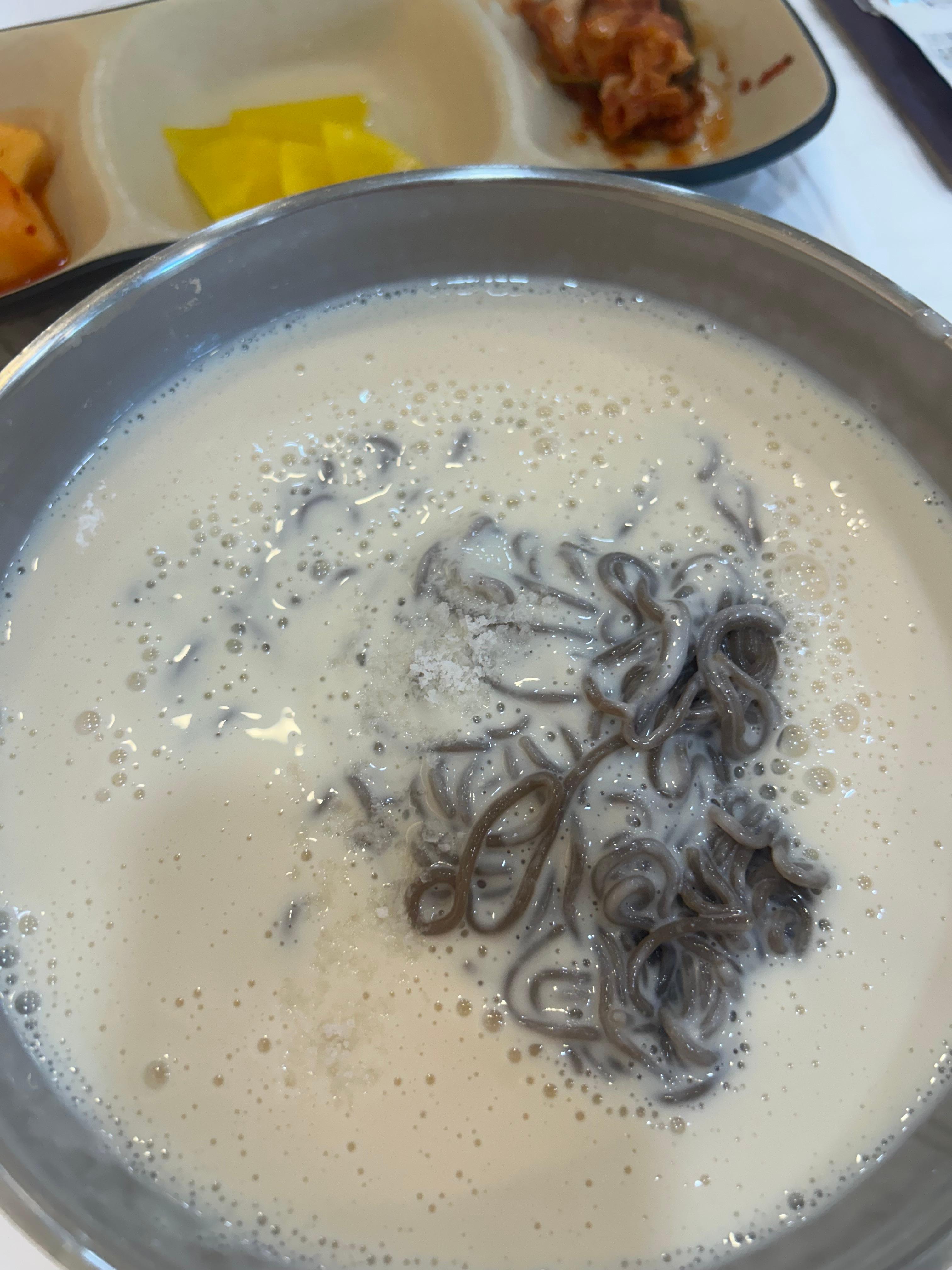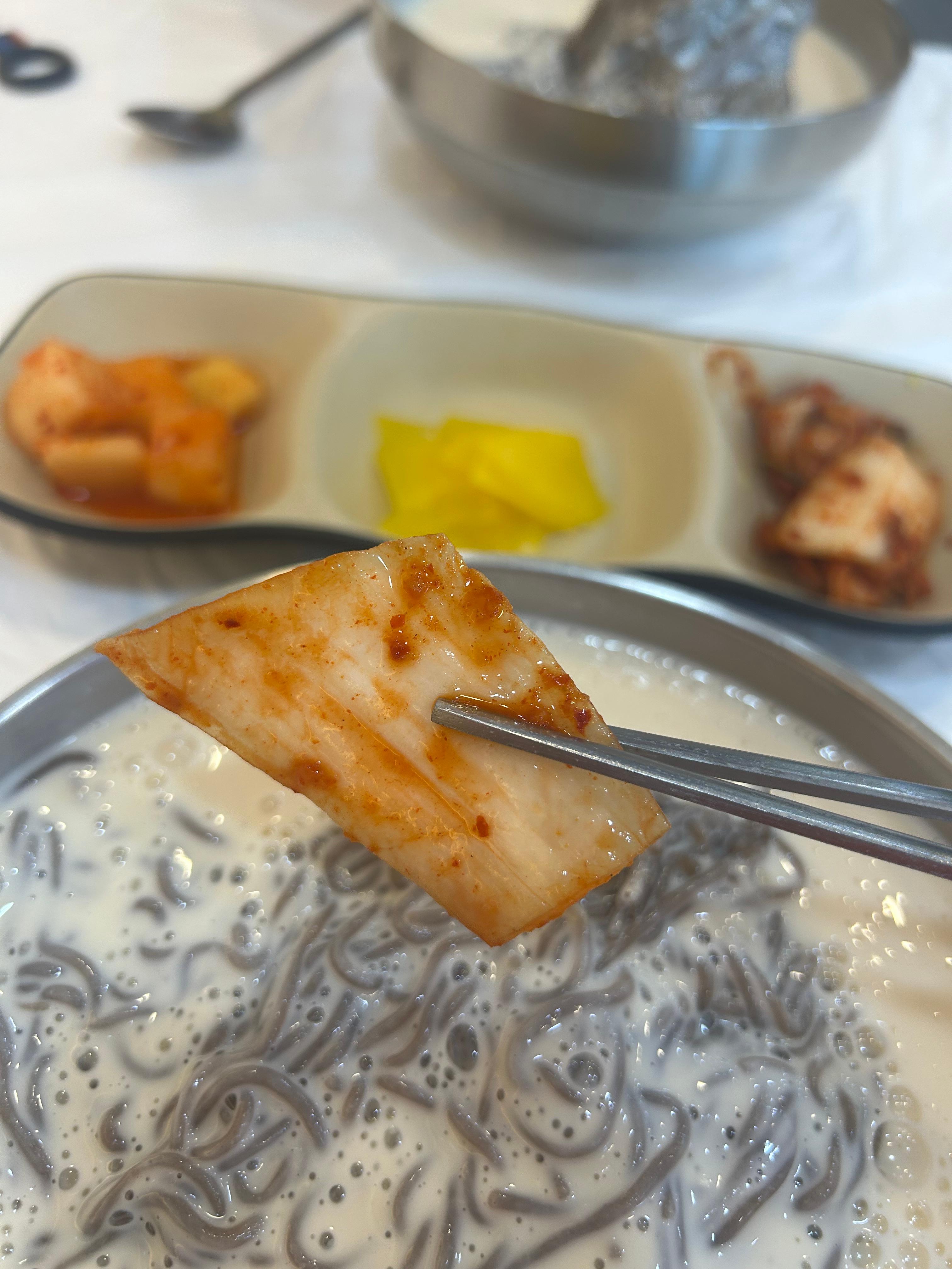 콩국수에 묵은지 하나 올려 맛을 보니?