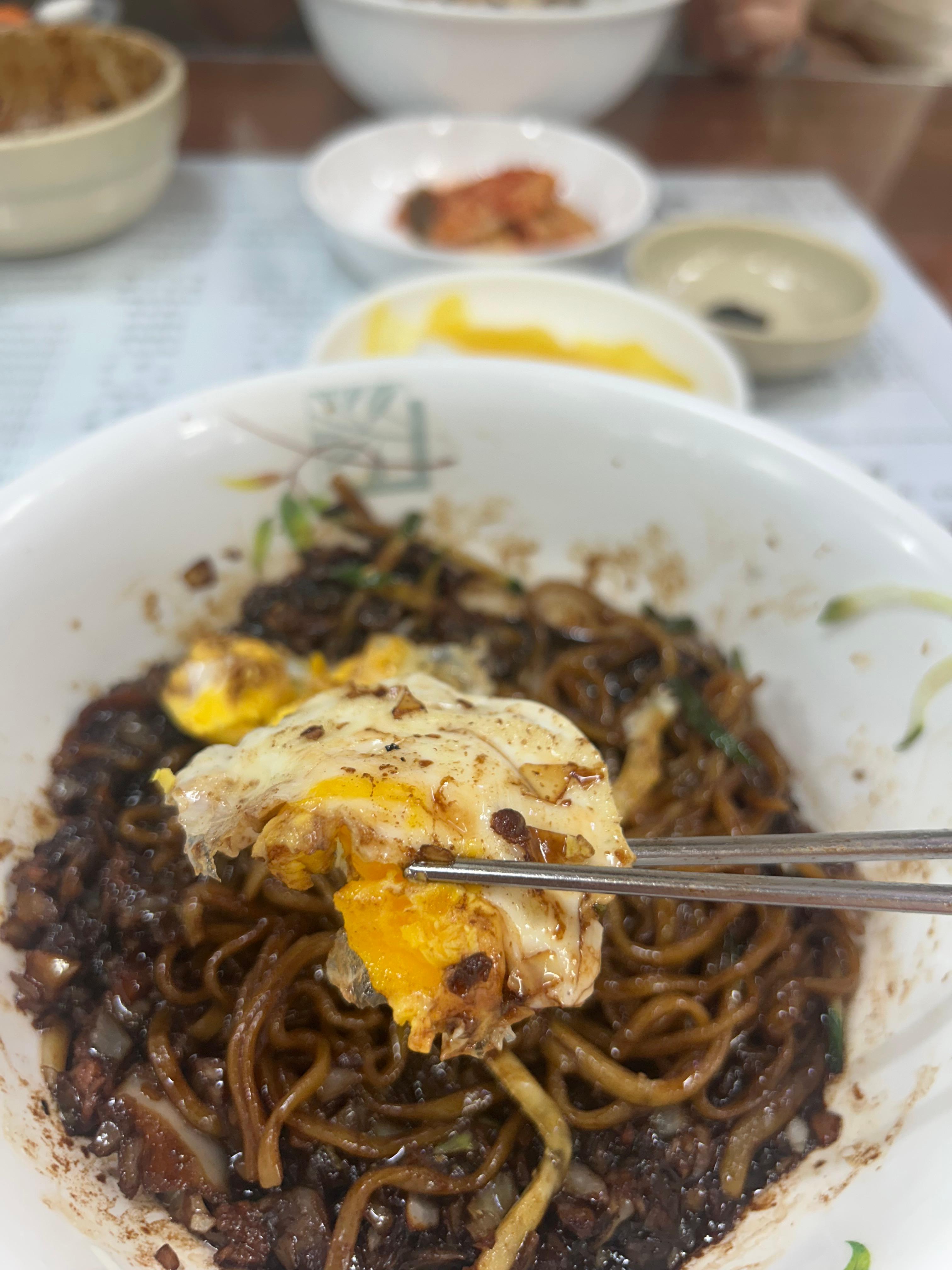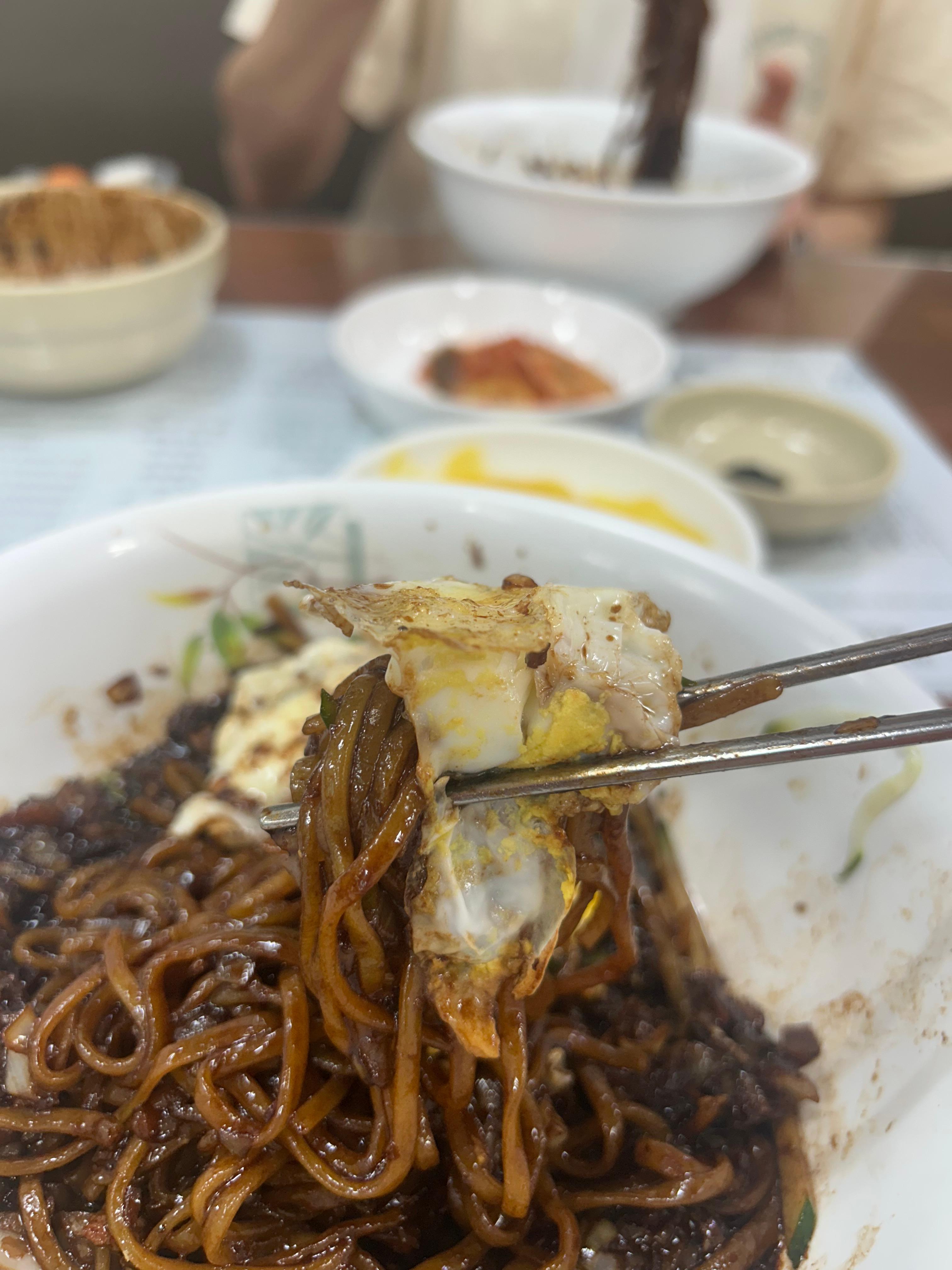 역시 따뜻~할 때 먹는 요 짜장면은 별미다. "