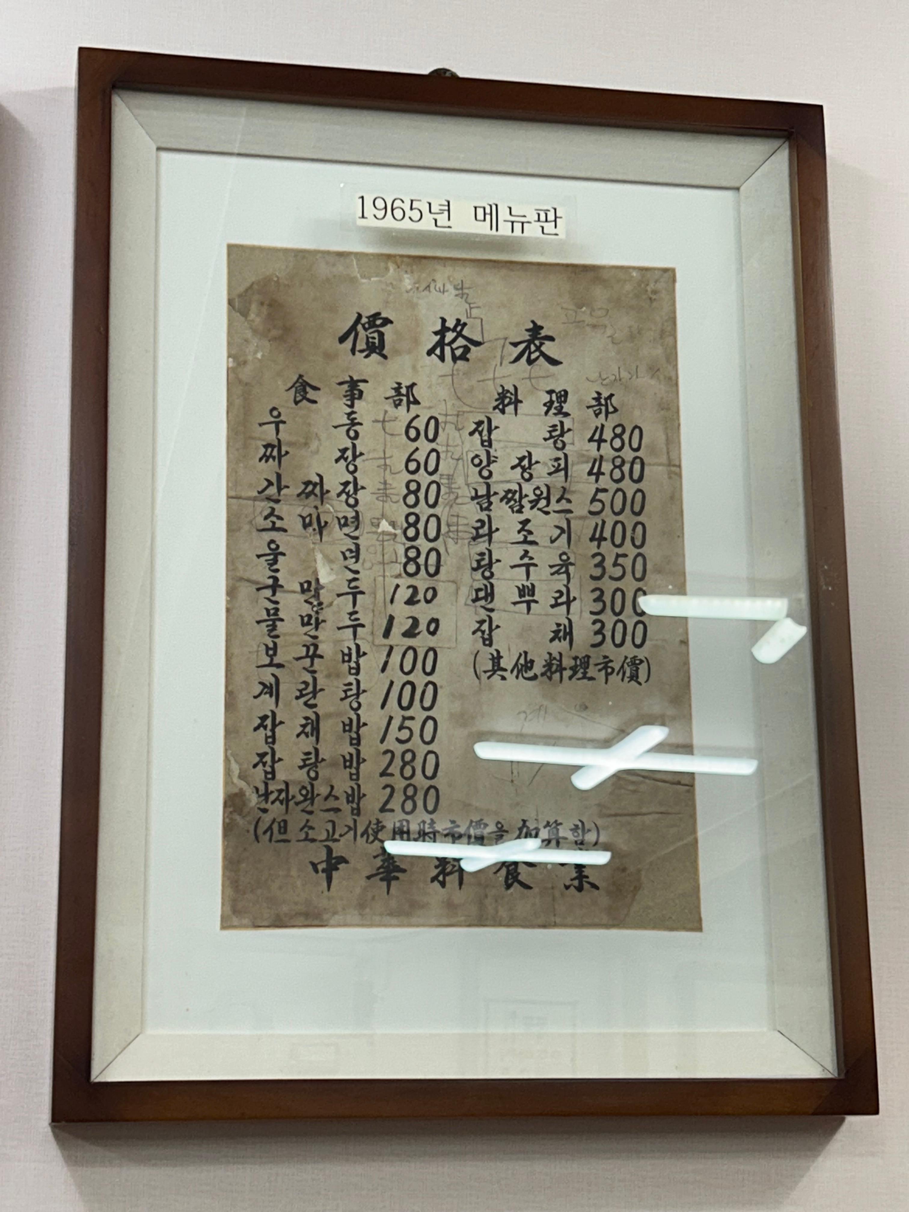 1965년 메뉴판을 구경하는데,