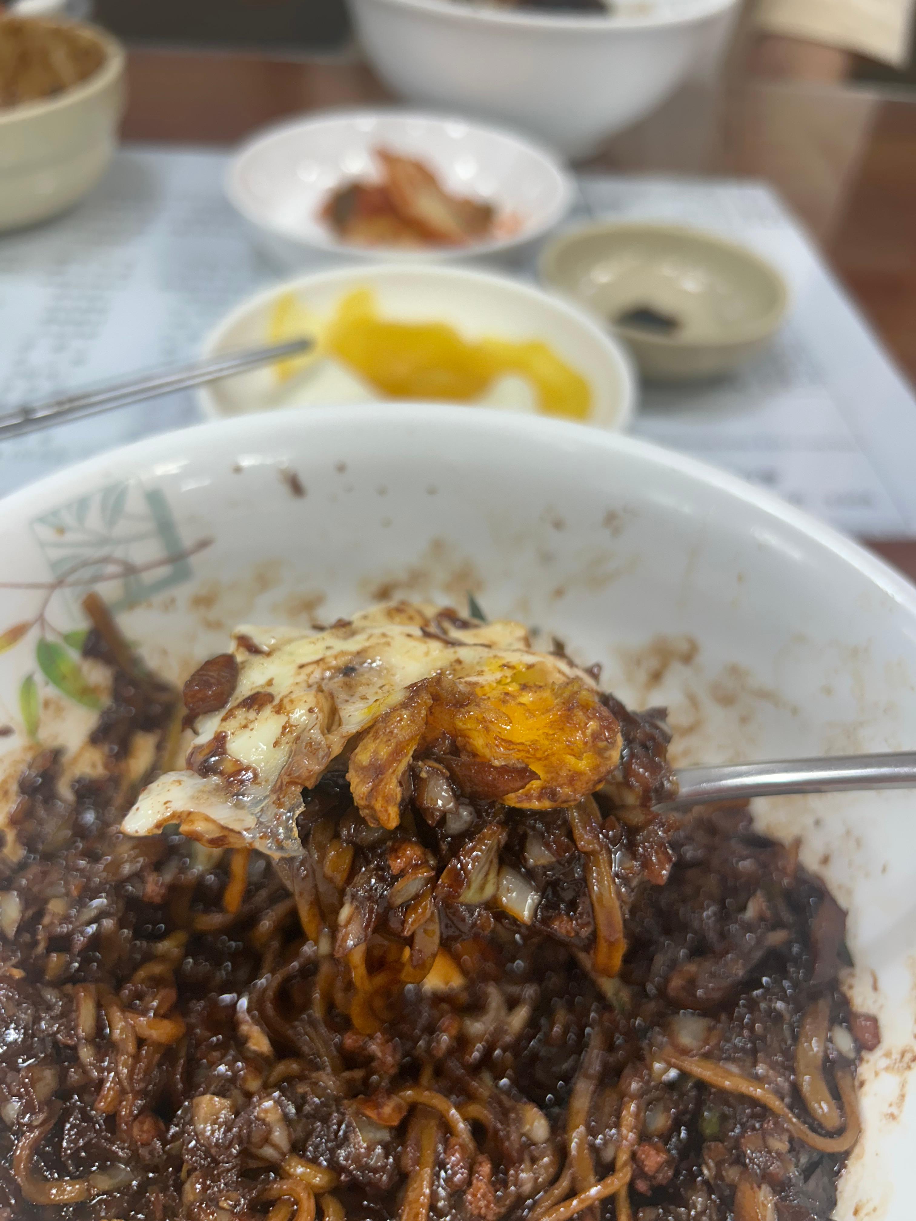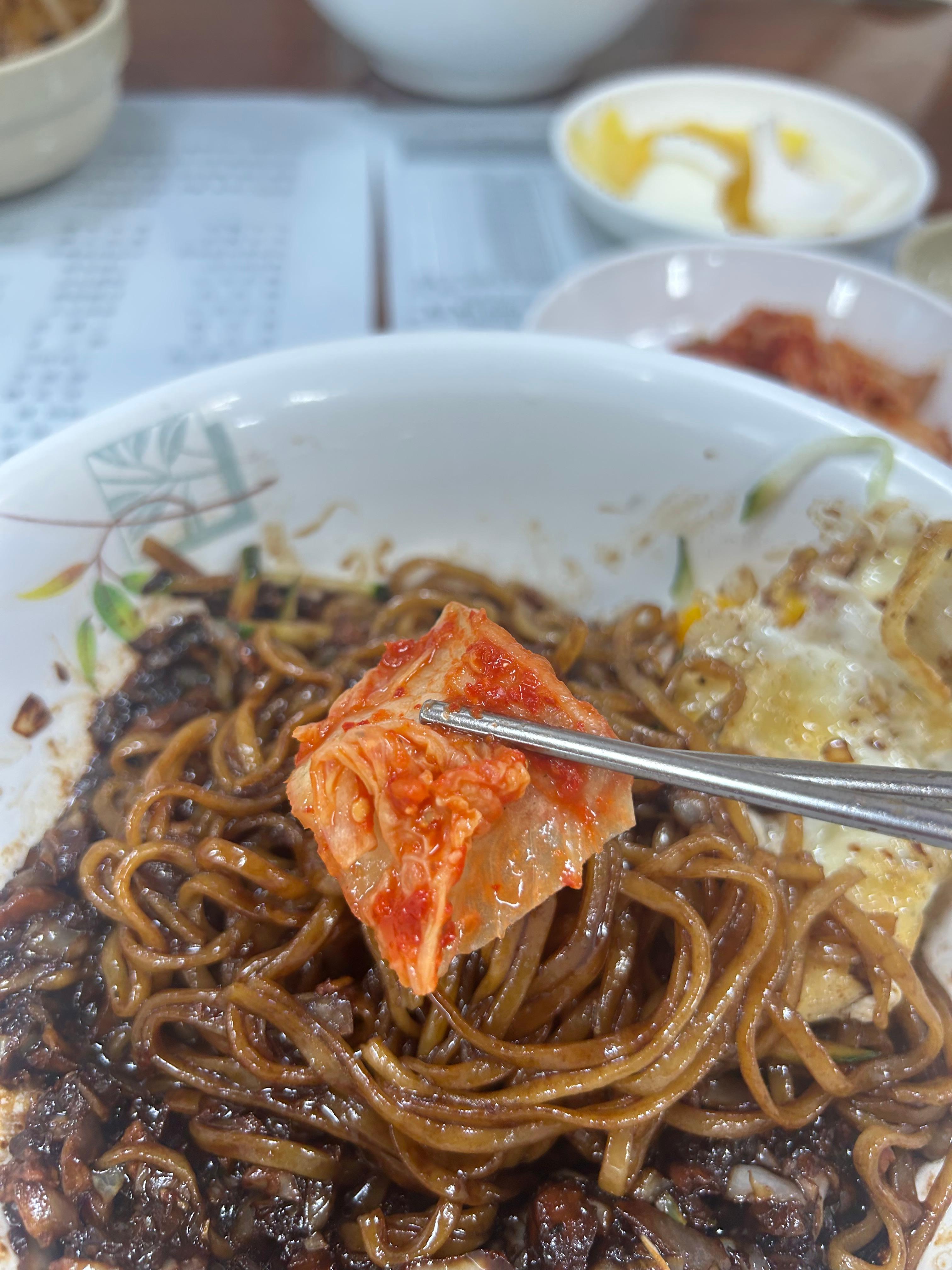 짜장면에 김치도 꽤나 잘 어울리고