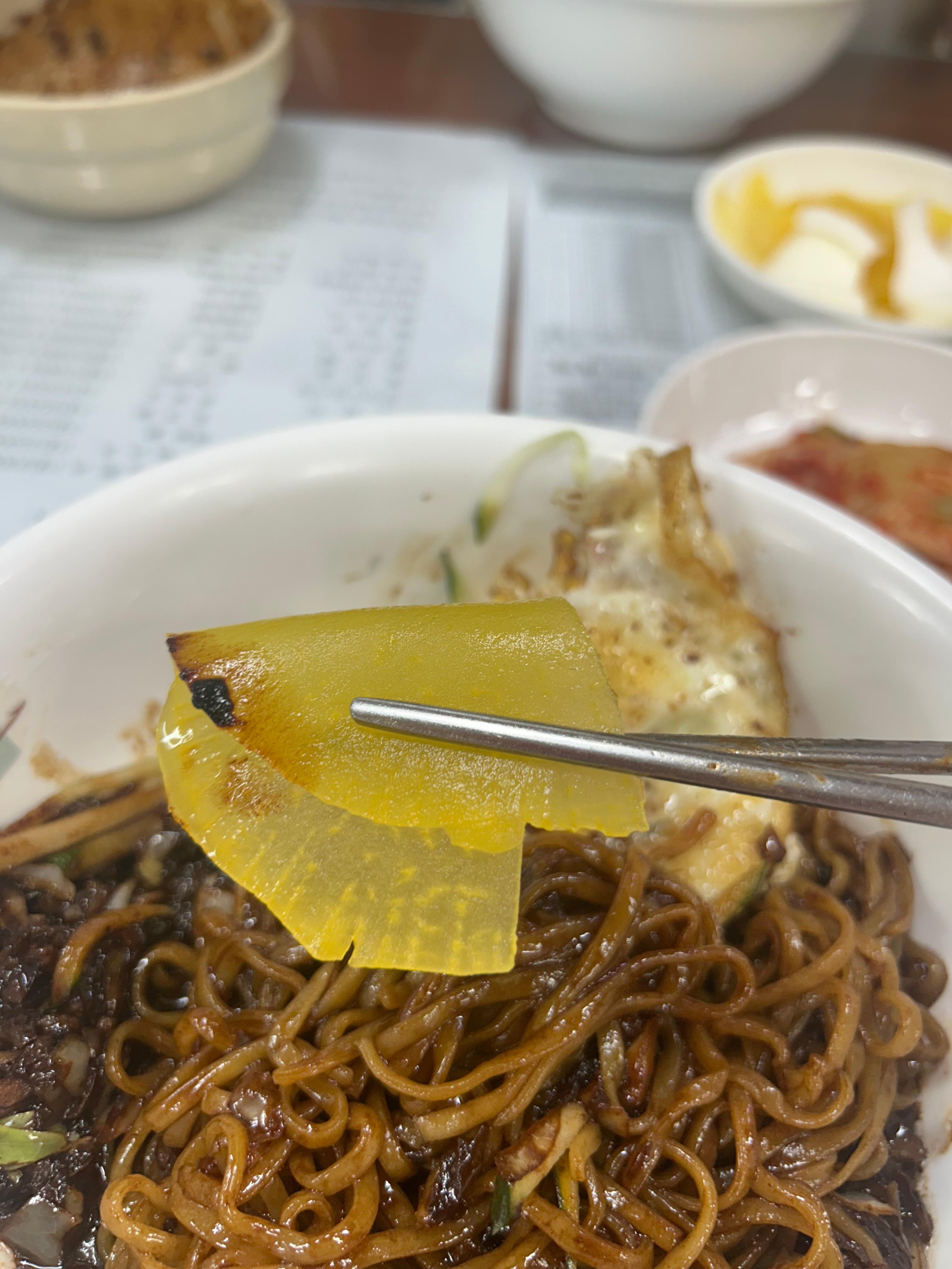 단무지 양파 춘장에