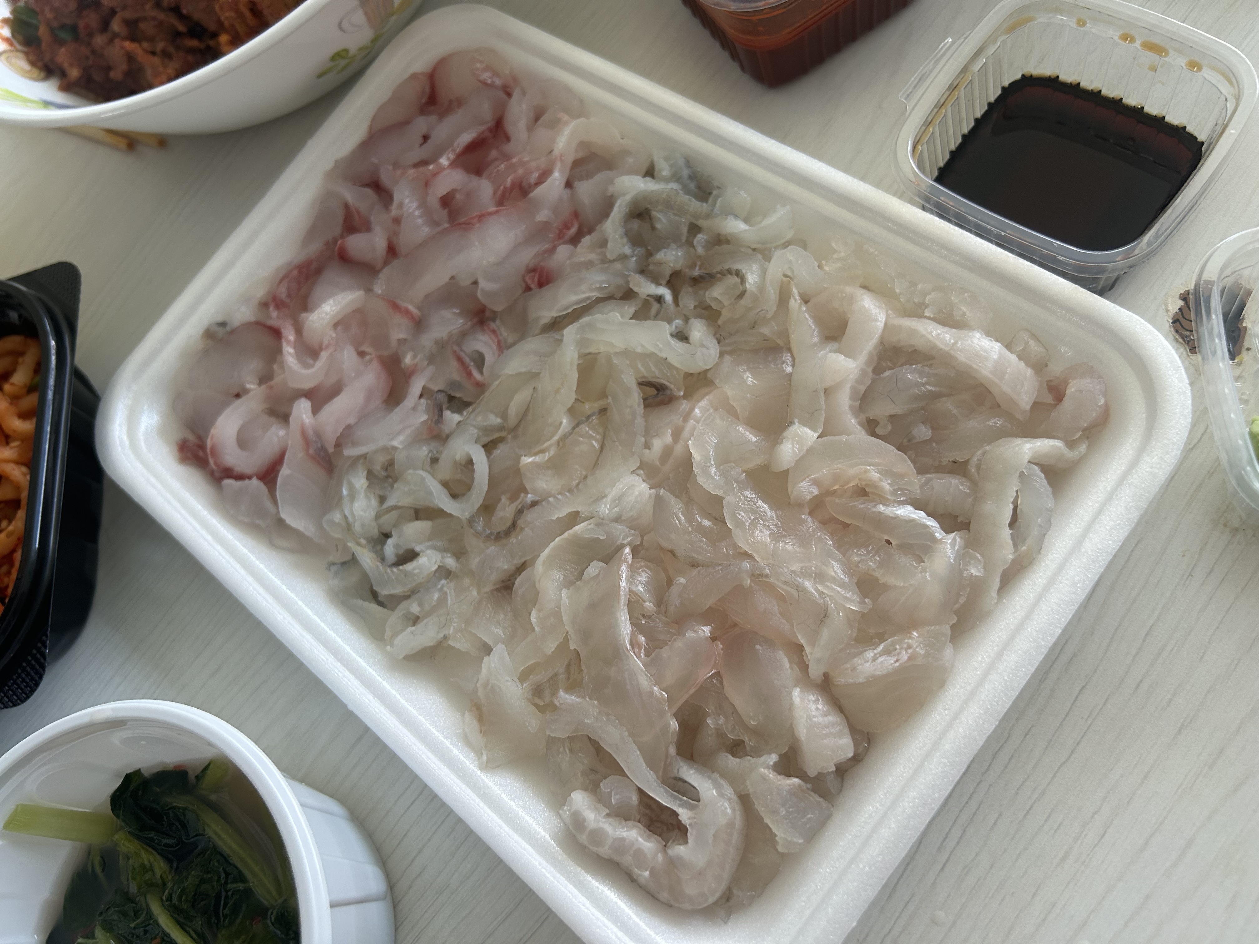 두루치기랑 보리밥 포장하고, 거기에 회까지?