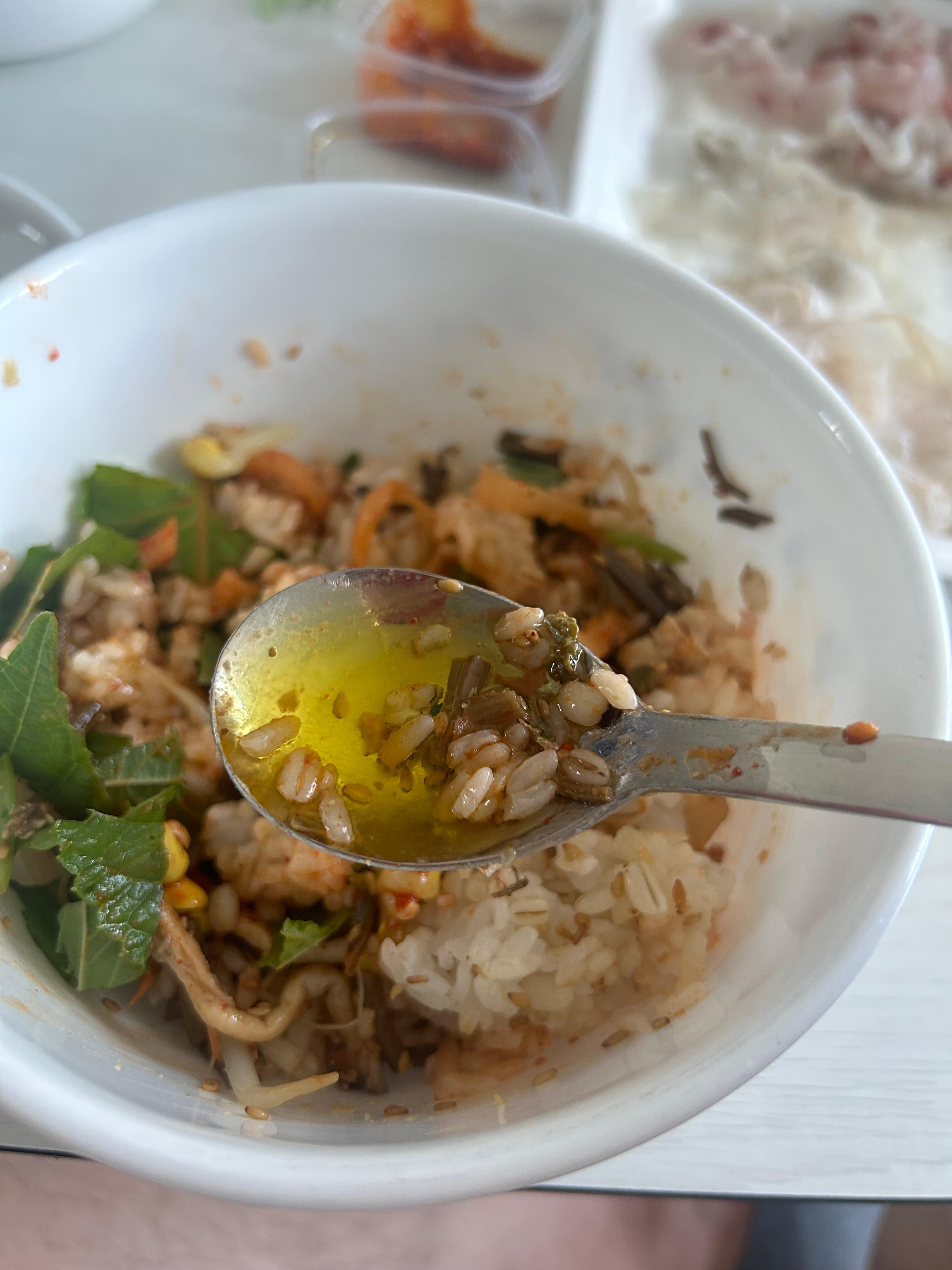 밥에 참기름일 넣고 비벼 먹어도 아주 꿀맛인