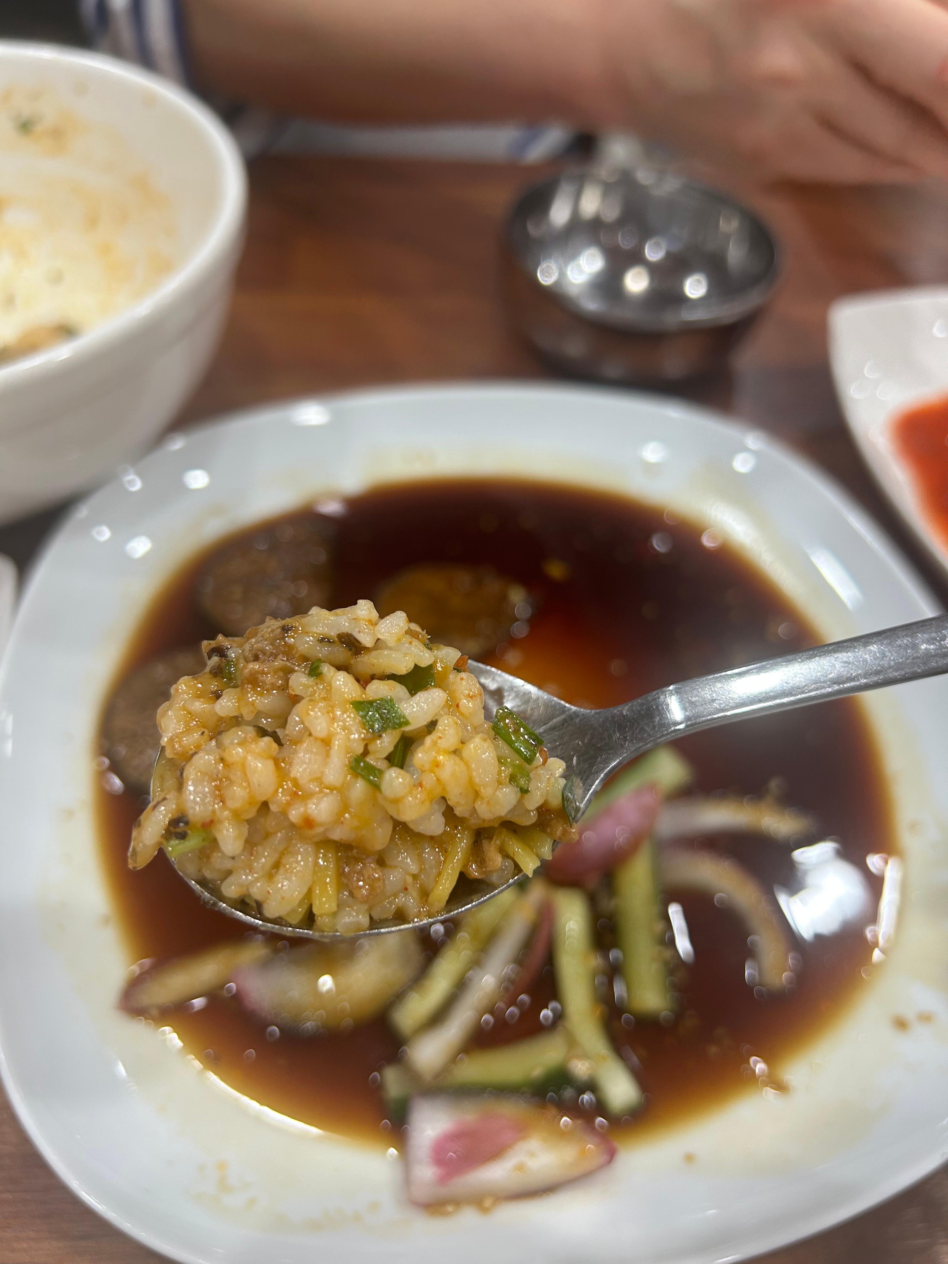 나도 깍두기 하나 스윽 올려 맛나게 냠냠.