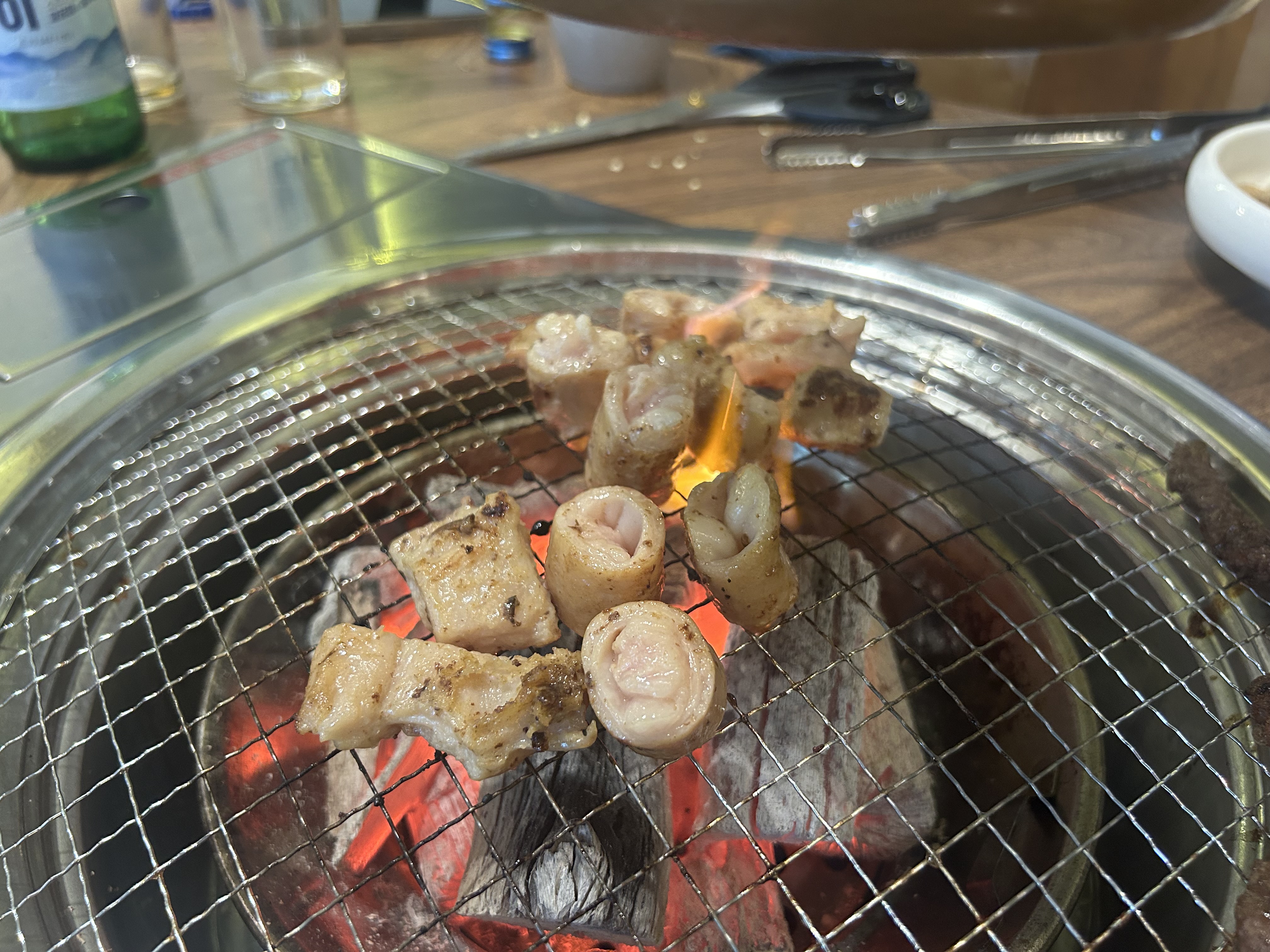" 막창을 이래 숯불에 바로 구우니깐